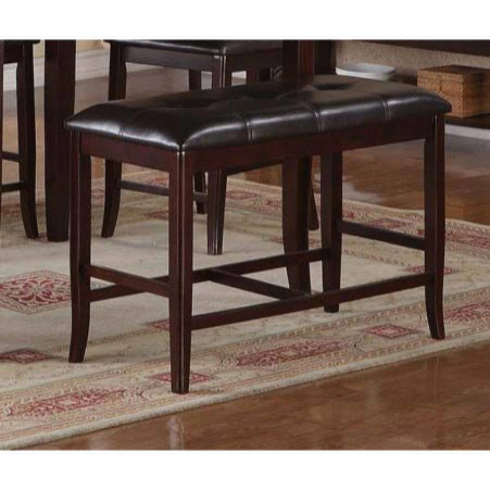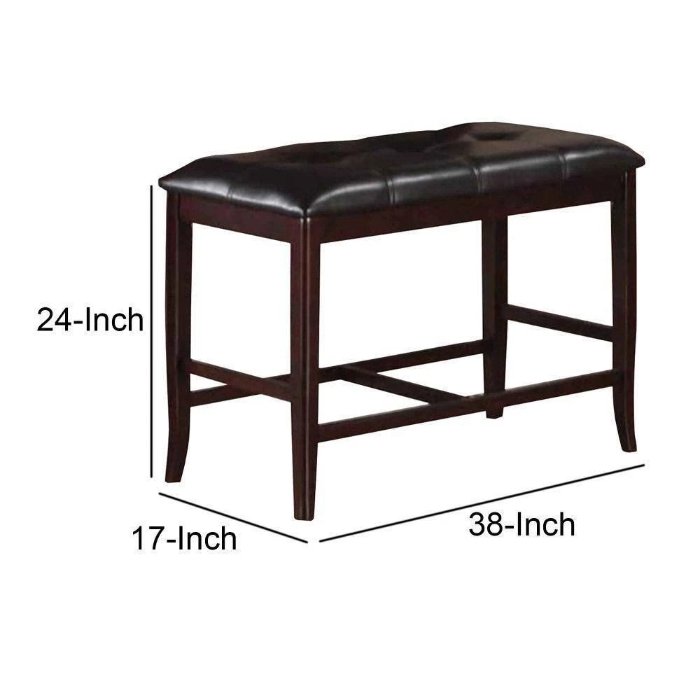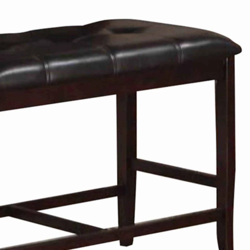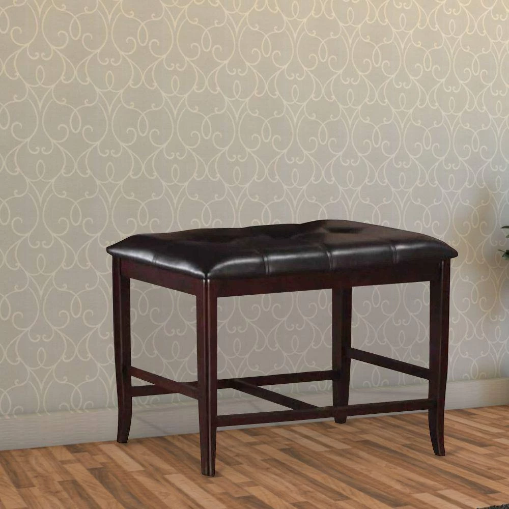 This tufted faux leather upholstered high bench makes a sophisticated, casual and comfortable addition to any room. The sturdy rubber wood frame features a rich brown finish that makes it blend with all decor style at ease. The foot rest provided at the bottom adds to its efficiency.