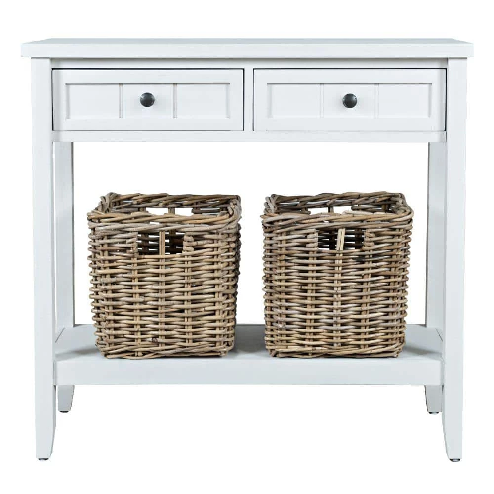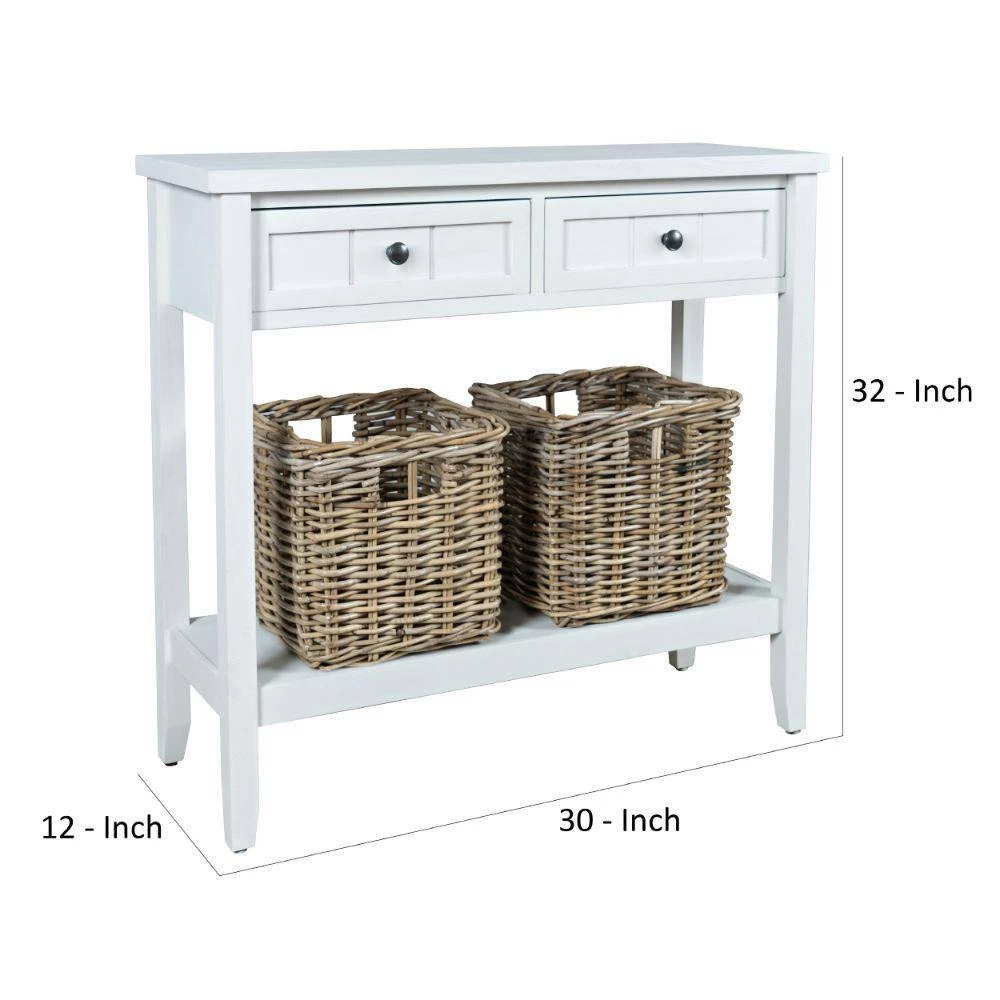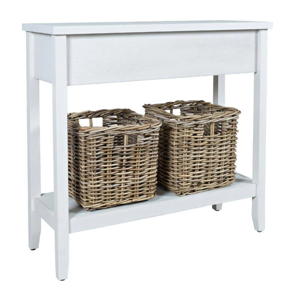 Clear your cluttered hallway with the inclusion of this classic console table. It has a wooden construction in antique white finish, giving it a classic look whereas is designed with 2-drawers and 2 removable rattan baskets for storage. This console table gives a feeling of elegance and sophistication.