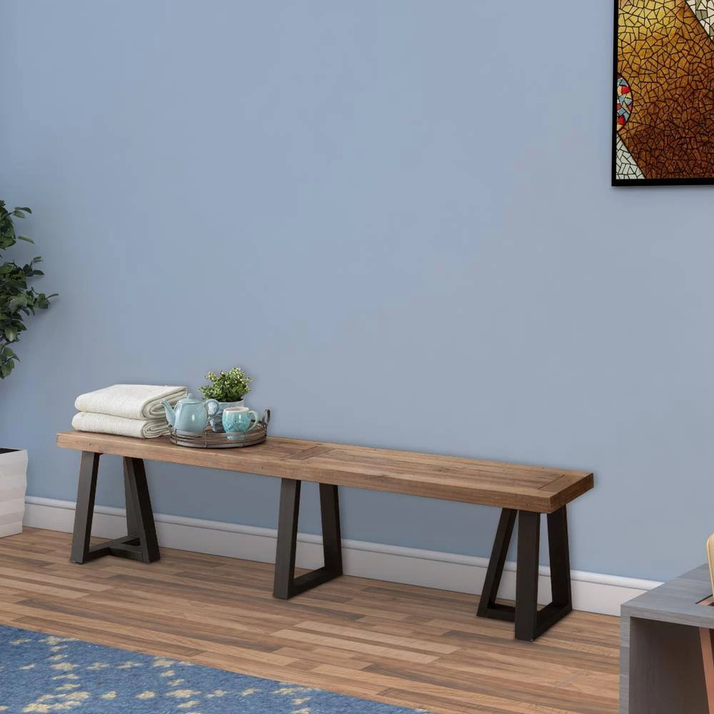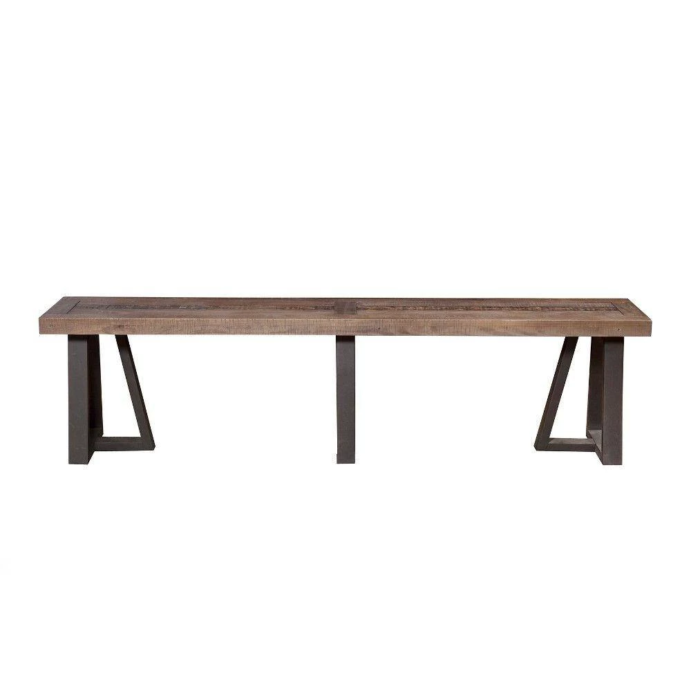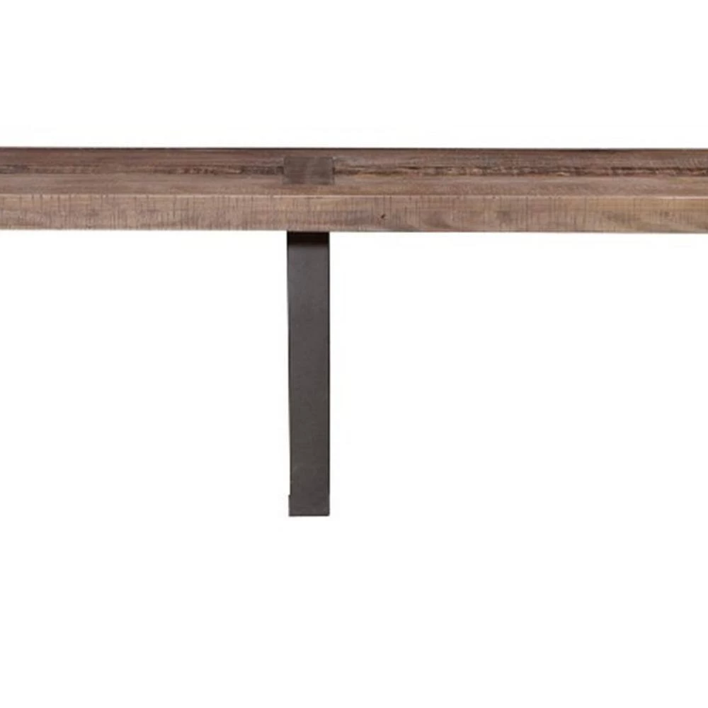 This Dining Bench brings a rustic charm to your dining area. This bench is spacious enough to accommodate several diners, allowing all of you to come together and eat like a family. This sturdy and beautiful bench is made of pine and has a distressed finish that will fit with a rustic or simple Southwestern style. The two-tone wood seat and contrasting black legs make this an attractive.