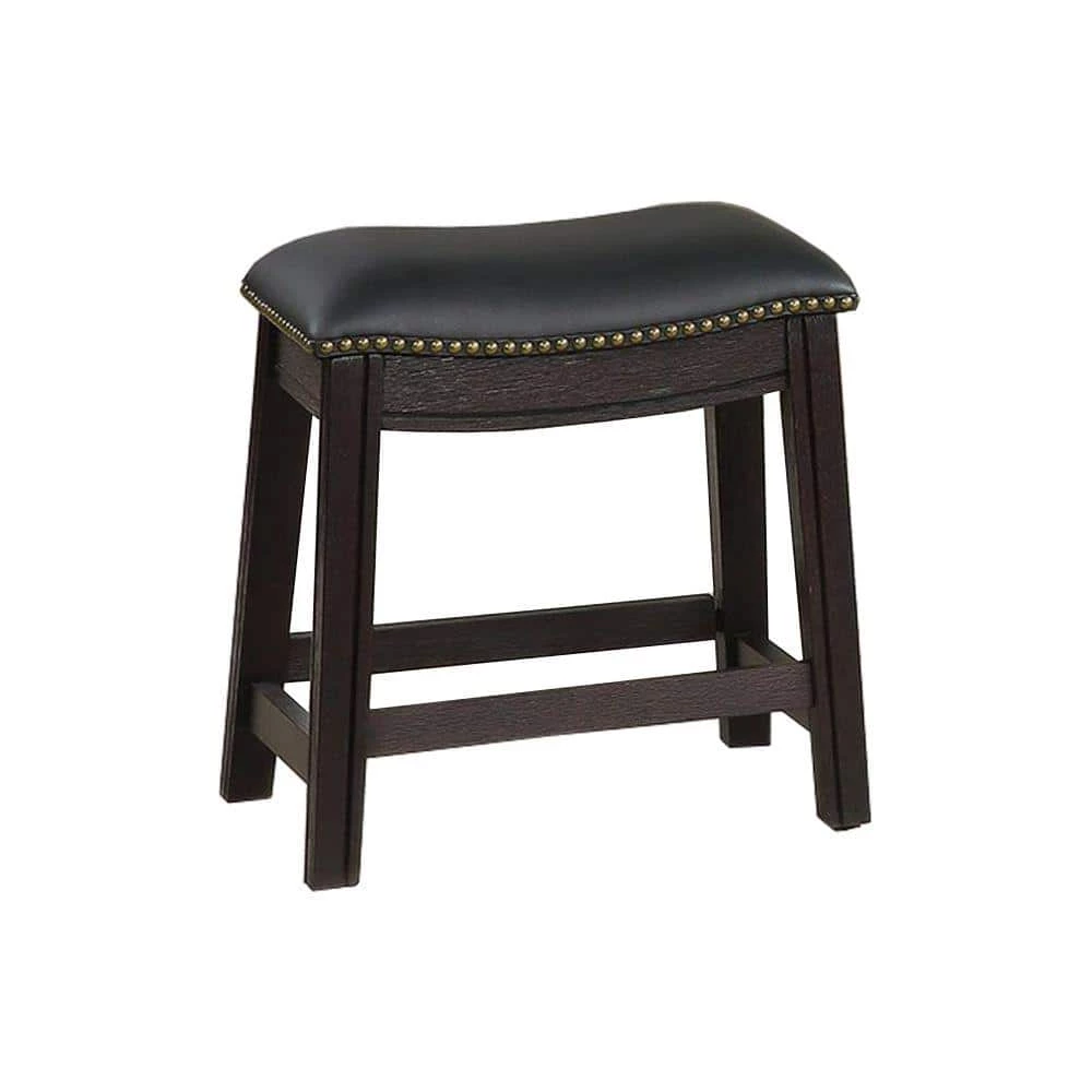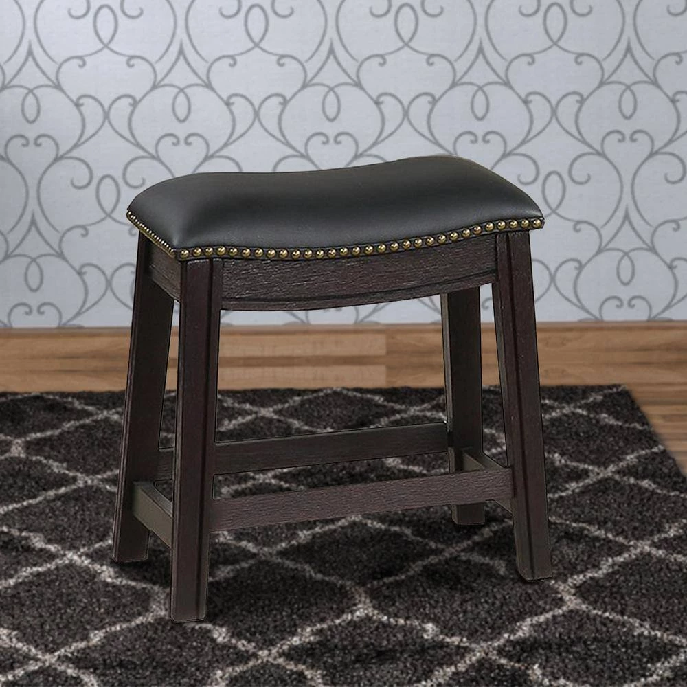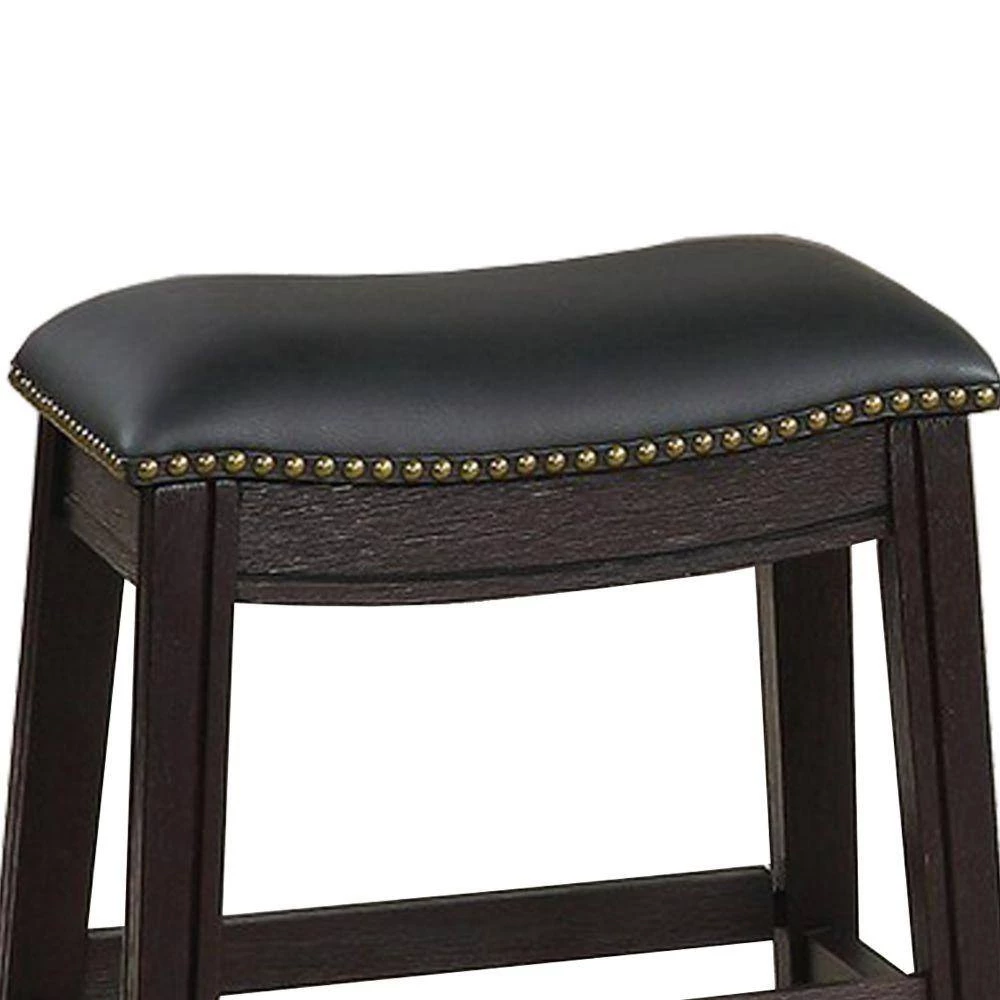 A perfect seating option, this stool available as set of 2 is a must have. Showcasing curved design structure, the seat been upholstered in leatherette with nailhead trim across the edges which adds a comfort and makes it worth addition. Angled block legs not only provide support but also provide stretchers for the feet to rest.