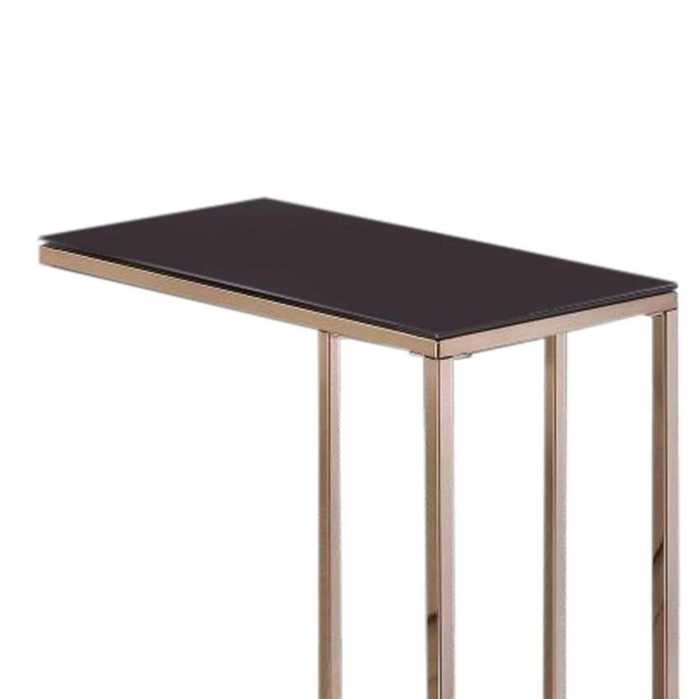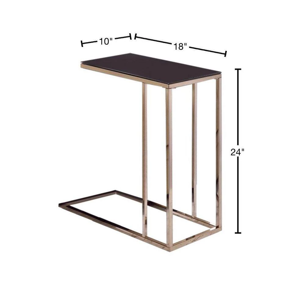 Perfect for placing a glass, a remote, or a plate, this snack table will be a very convenient addition to your living room. The base is made of chocolate chrome metal and will be a steady support on both hard surfaces and carpet. The table has a chic black tempered glass top.