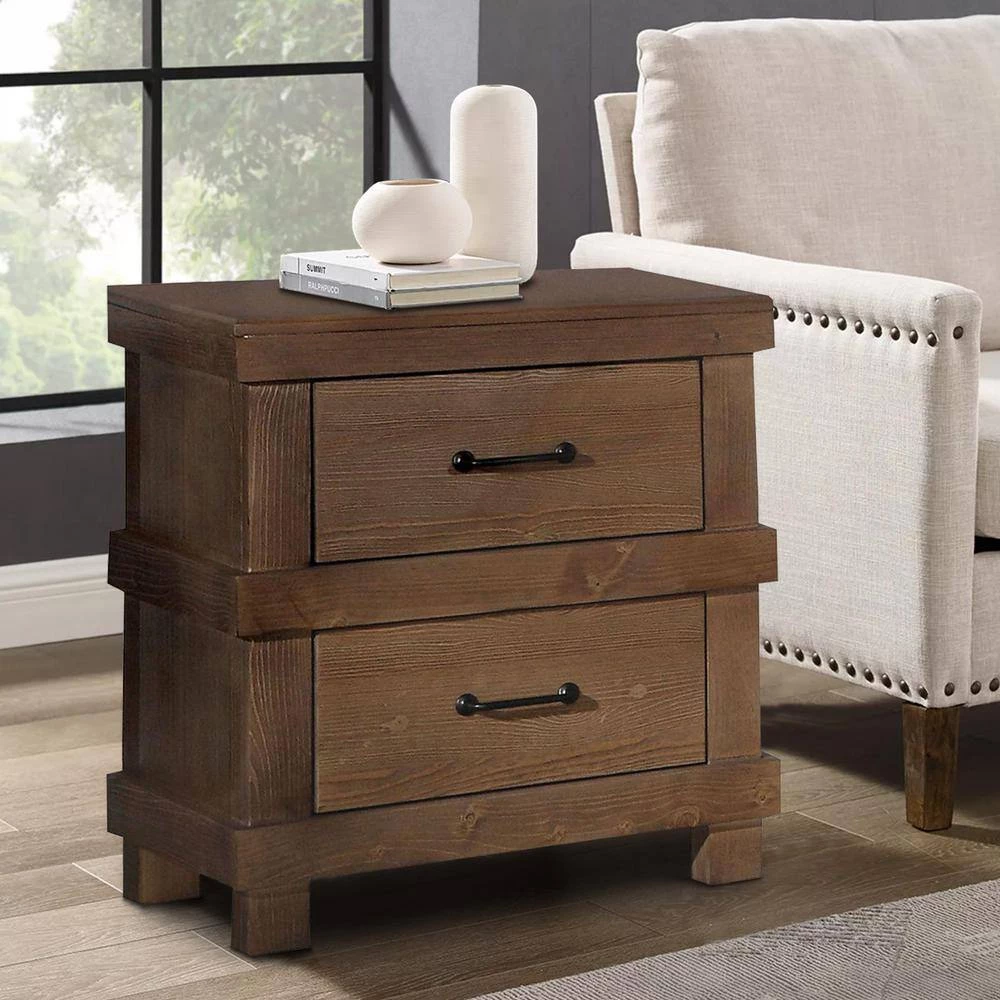 The visual appeal of this nightstand is featuring an antique oak finish giving a contemporary look the constructed body. With a complete one tone finish, this nightstand is a functional as well as a beautiful furniture piece. It also features two spacious drawers with metal handles so that it can hold all your bedtime essentials and other things easily. The flat table top can be used to place a sleek lamp, photo frame, vases, etc. to complete the bedroom setup. Does not include any featured product other than one nightstand only.