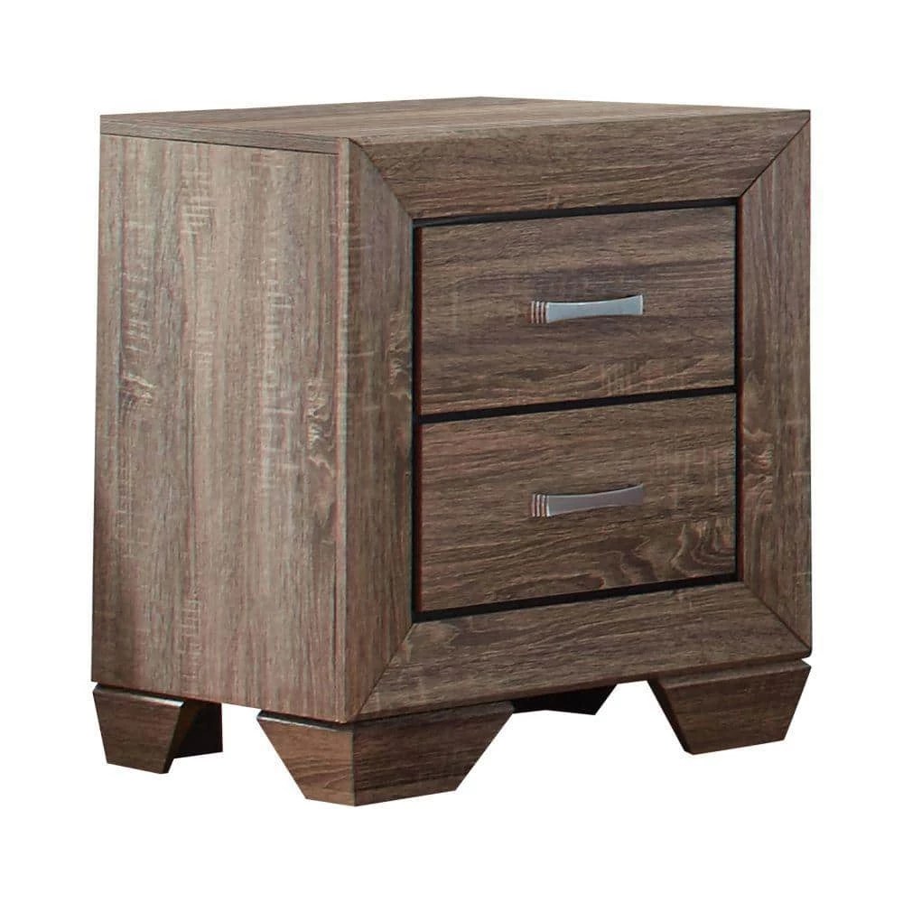 Transitional styles are impressive and functional at the same time. This nightstand showcases a perfect example, featuring two spacious drawers. Made up of engineered wood, the nightstand features a brown finish along with two drawers and metal handles to efficiently hold all your essentials along with tapered feet.
