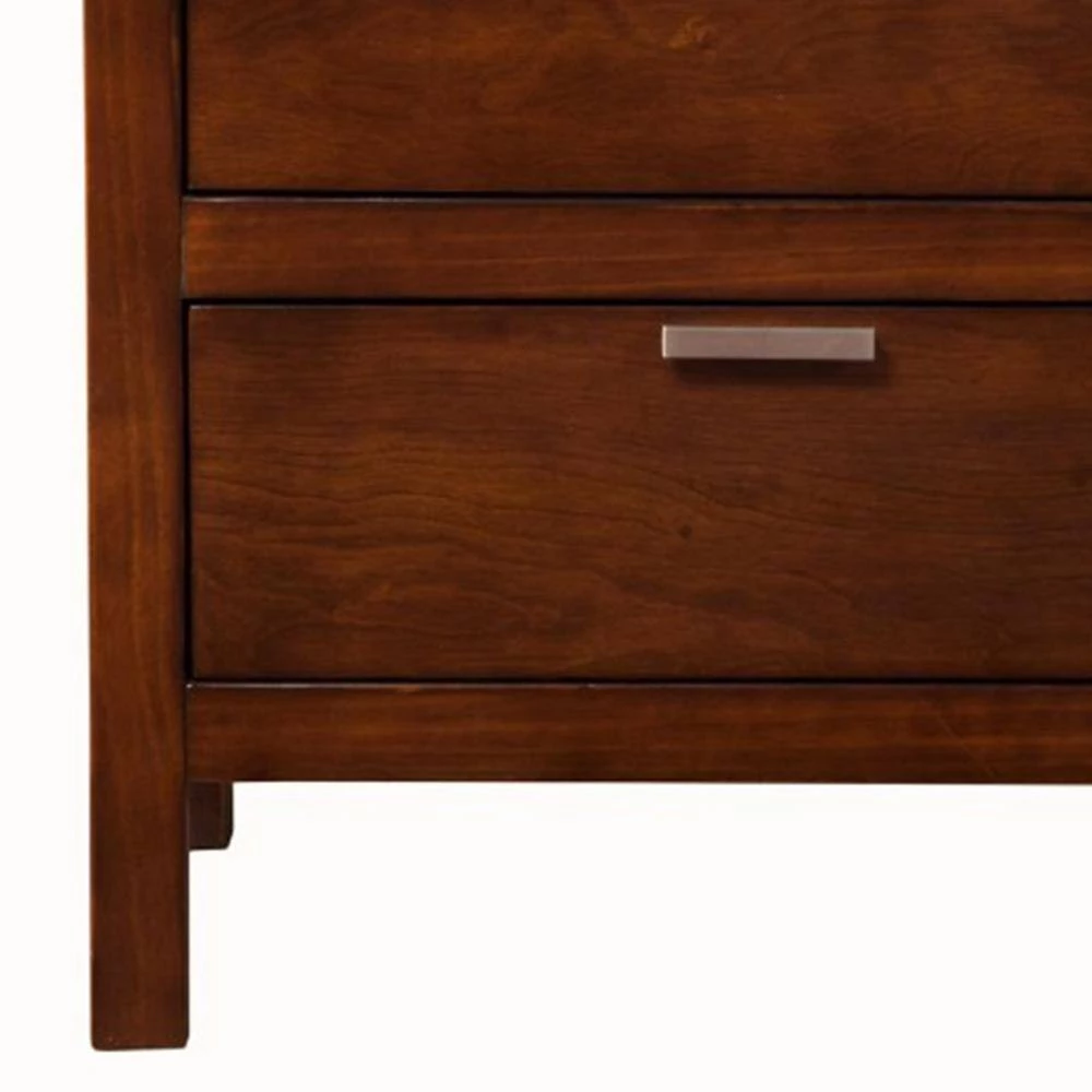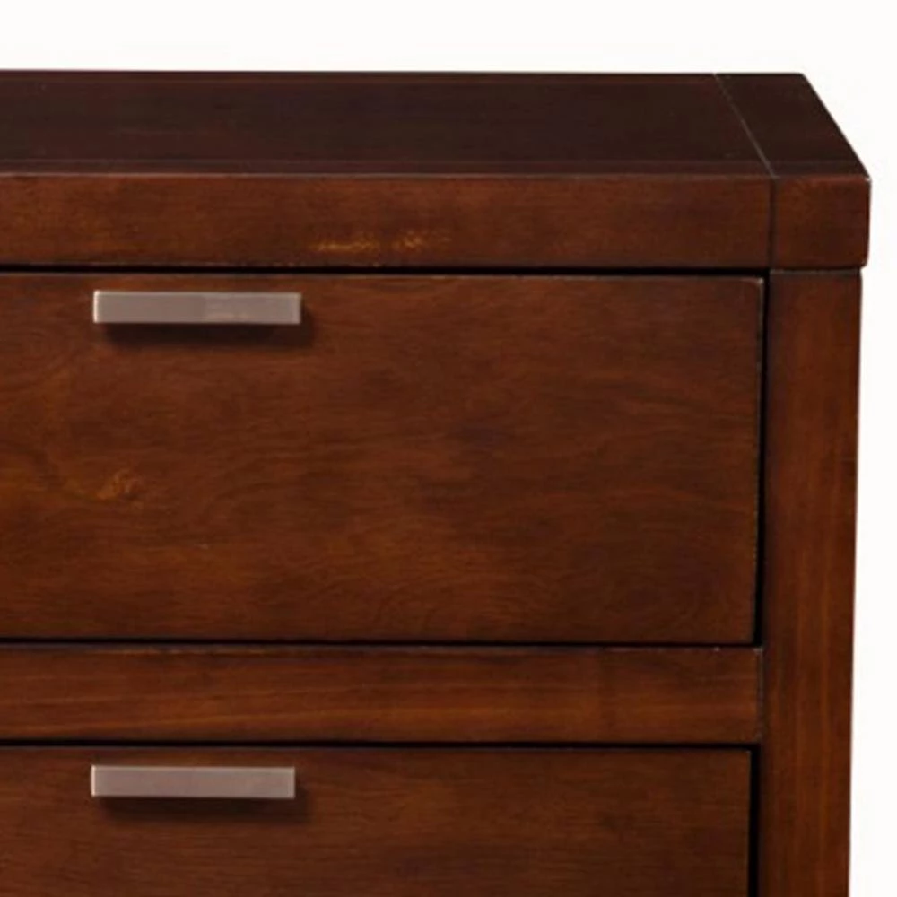 Featuring a straightforward style, the Nightstand features an edgy punctuation. Crafted from select solids and veneer. The nightstand holds a brown hue and comes with two drawers.