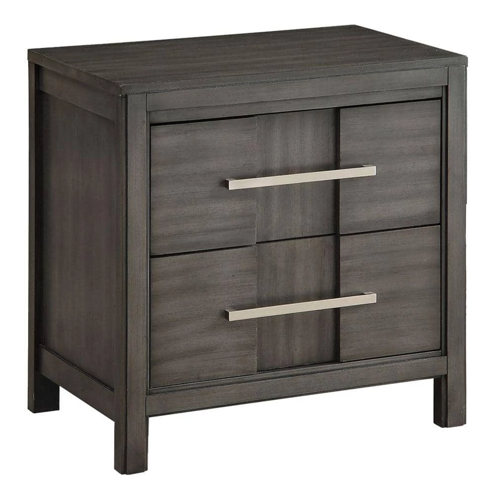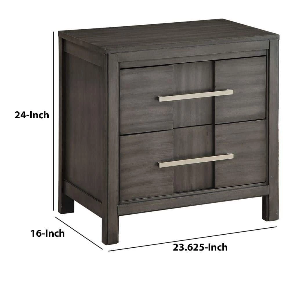 Intensify your living space with a rustic charm to your bedroom with this absolutely stunning night stand in a gray finish. Crafted from wood, this gorgeous piece features 2-drawers with ample storage for your bed time essentials to be at your nearest place. Decorate the top with your most cherished photos, paintings or decor items, this night stand is versatile and makes a statement of its own.