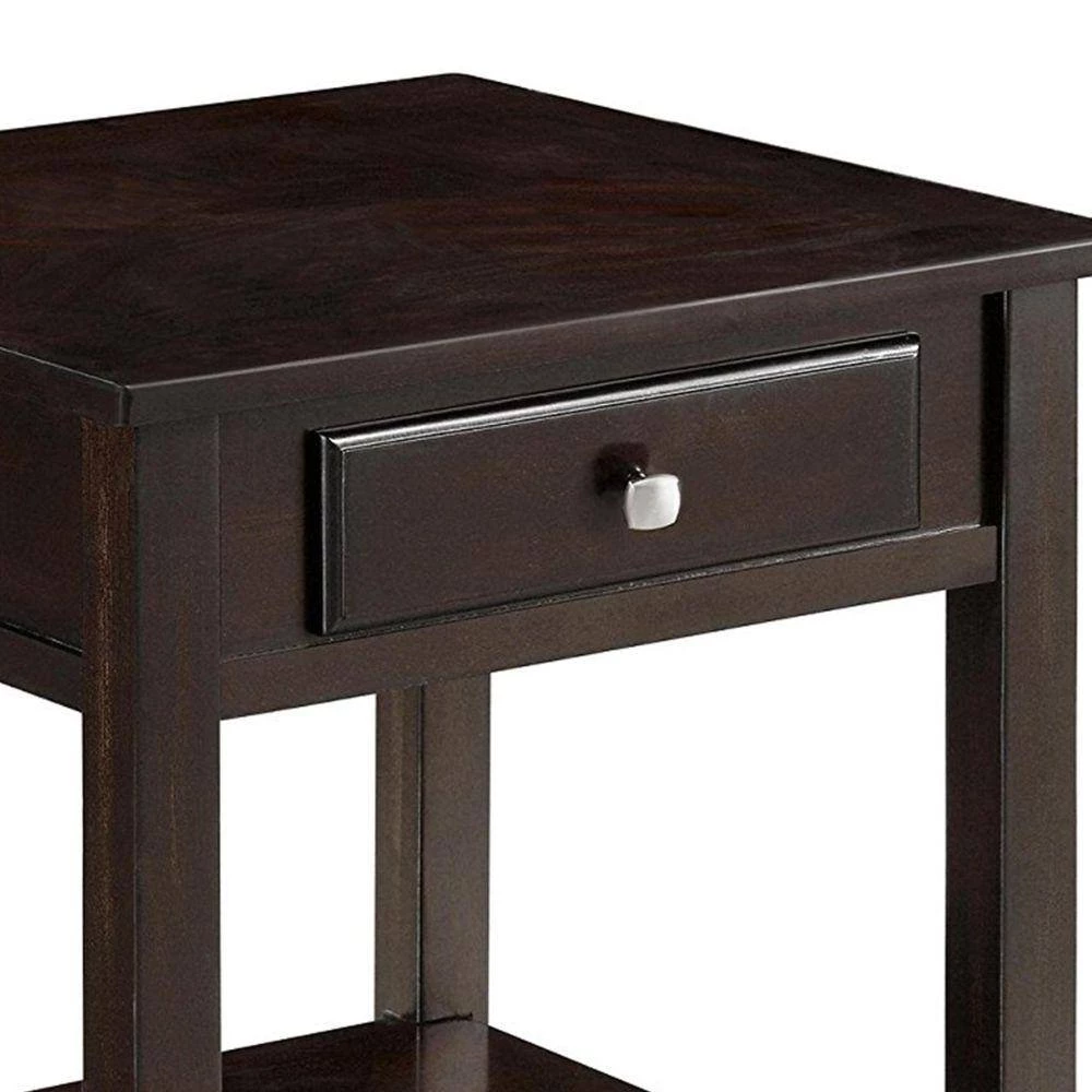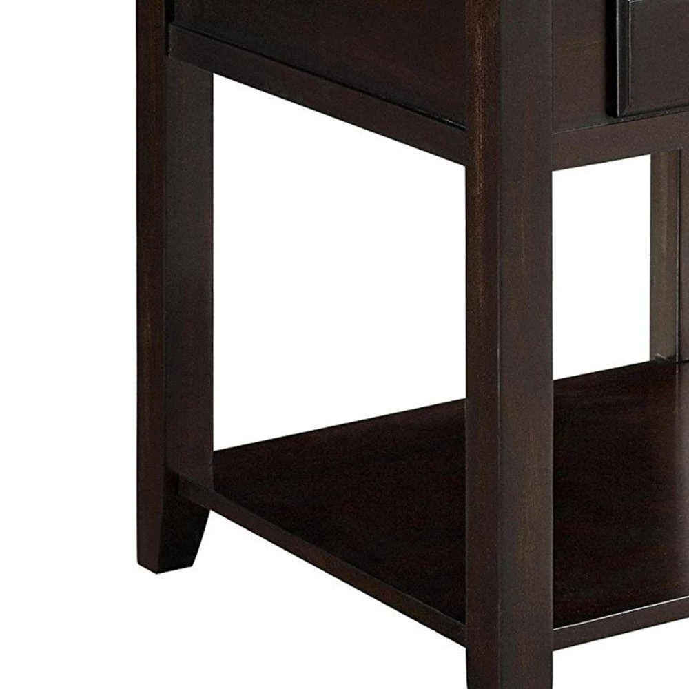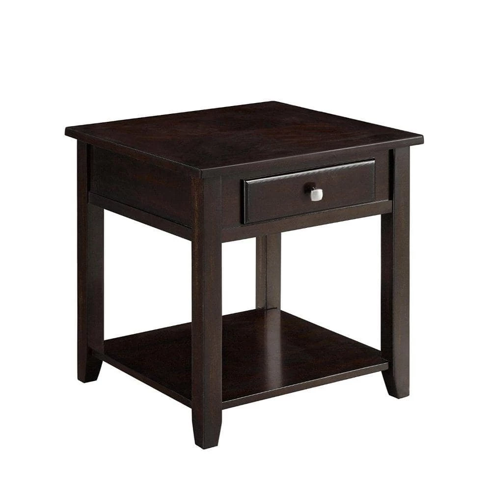 Elegantly designed with simplicity this solid wooden end table is minimal yet very eye-catchy, with its clean and crisp finish. Made of solid wood in walnut brown finish, the table features long sturdy legs. It also offers a perfect needed drawer with metal hardware and a lower bottom shelf for exhibiting decor items. Best suited for contemporary homes and spaces this will be a welcoming addition to any home space.