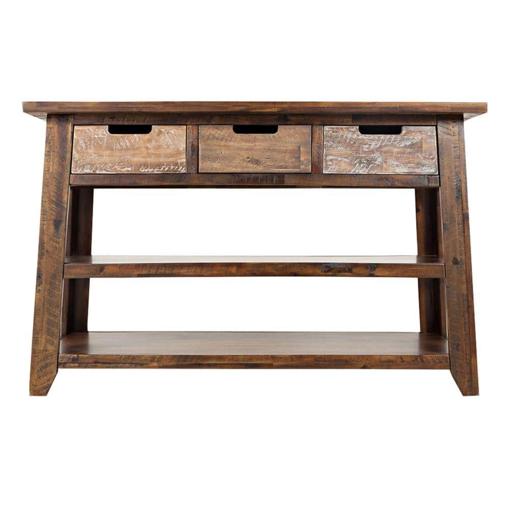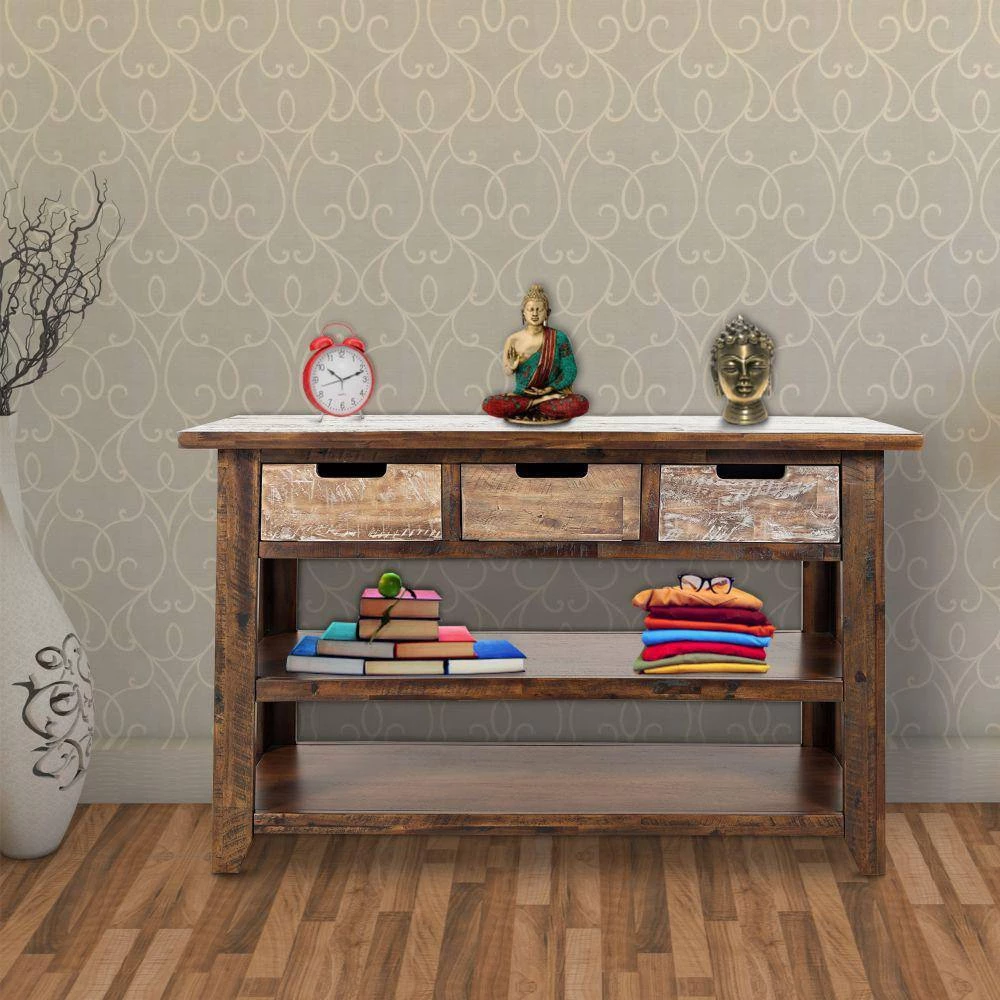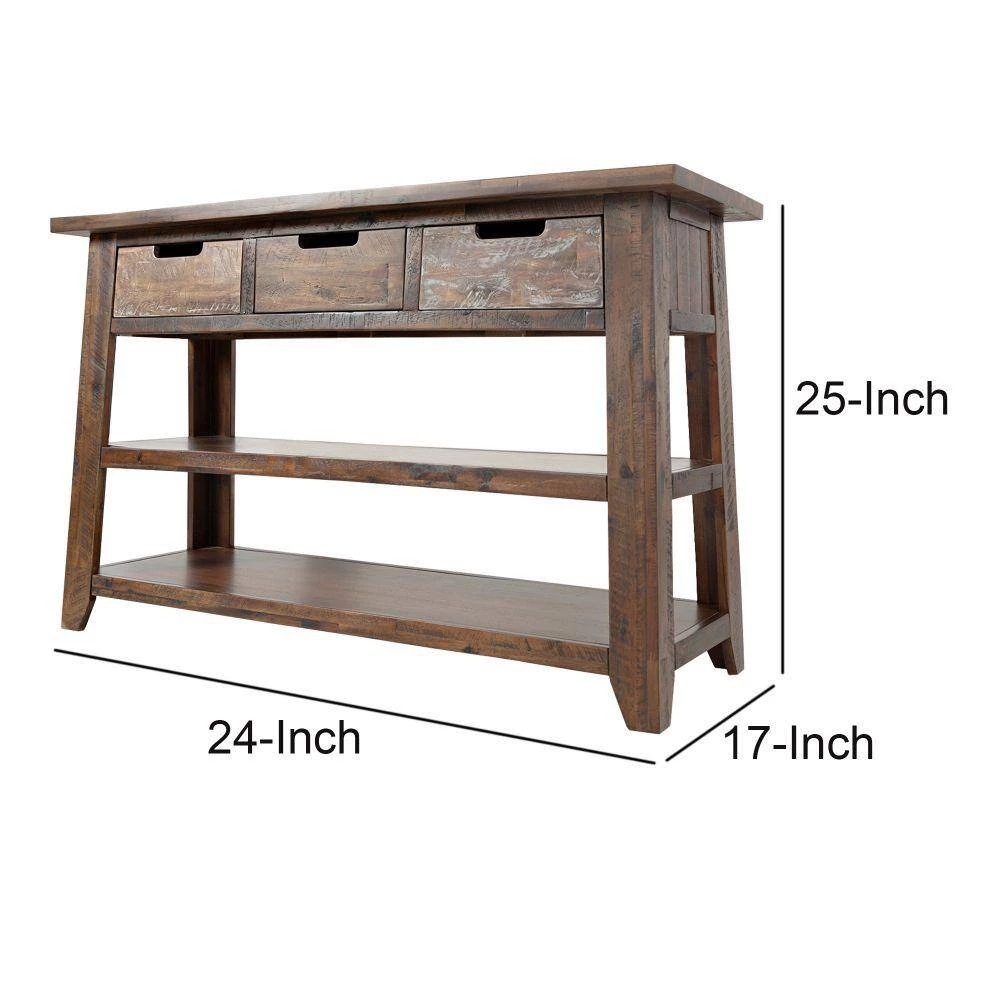 Let beautiful aesthetics do the talking for your living space. This stunning brown Sofa Table offers minimalism and elegance all at once. Accompanied with 3 drawers providing ample storage space with cutout handle, 2 shelves offering room to stash away your most loved books and magazines, this wood crafted Sofa Table will be an asset to your humble abode.
