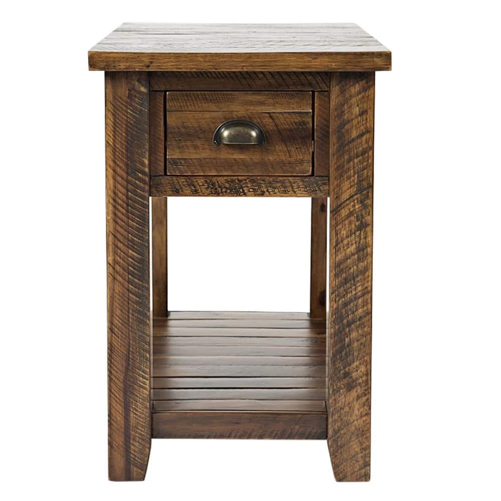This chairside table is a useful yet beautiful addition for home. Made up of wood and metal fitting, this incredibly designed dakota oak(brown) finish table has one drawer and one open shelf at bottom for easy storage. The drawer features an antique hardware cut-out handle for easy pull that makes it a real treasure. Place a table lamp or other decorative on table top surface to decorate your furniture setting easily. This visual delight cabinet is a must bring furniture for home.