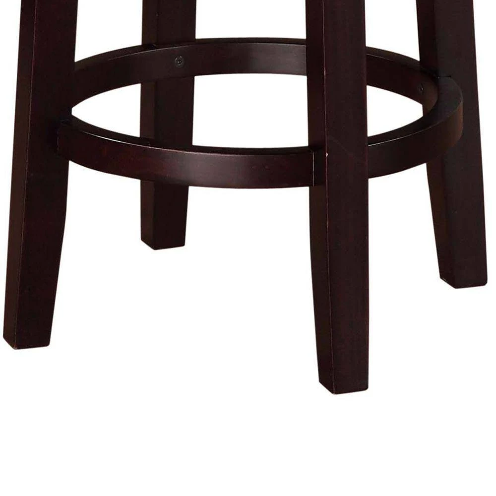 Enhance the charm of your home bar or kitchen island with the inclusion of this counter stool. Constructed sturdily from hardwood and foam cushioned seat upholstered in white faux leather for a comfortable seating experience. Supported on slanted legs with built in circular footrest and swivel base, it comes in a brown finish, imparting an overall minimalistic look to the stool.