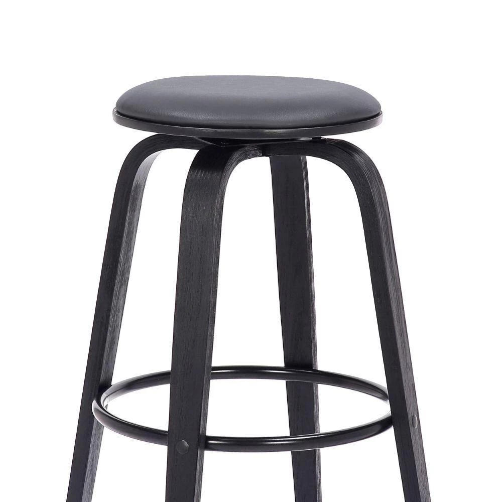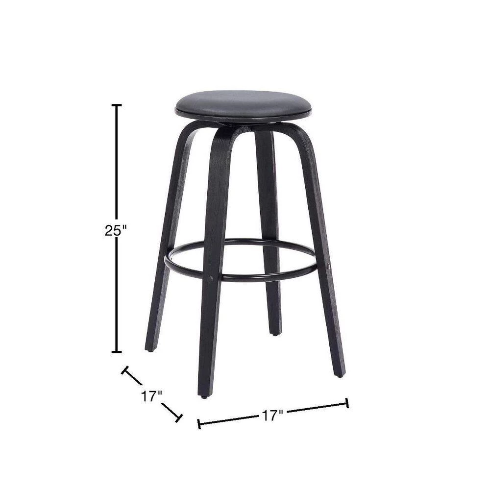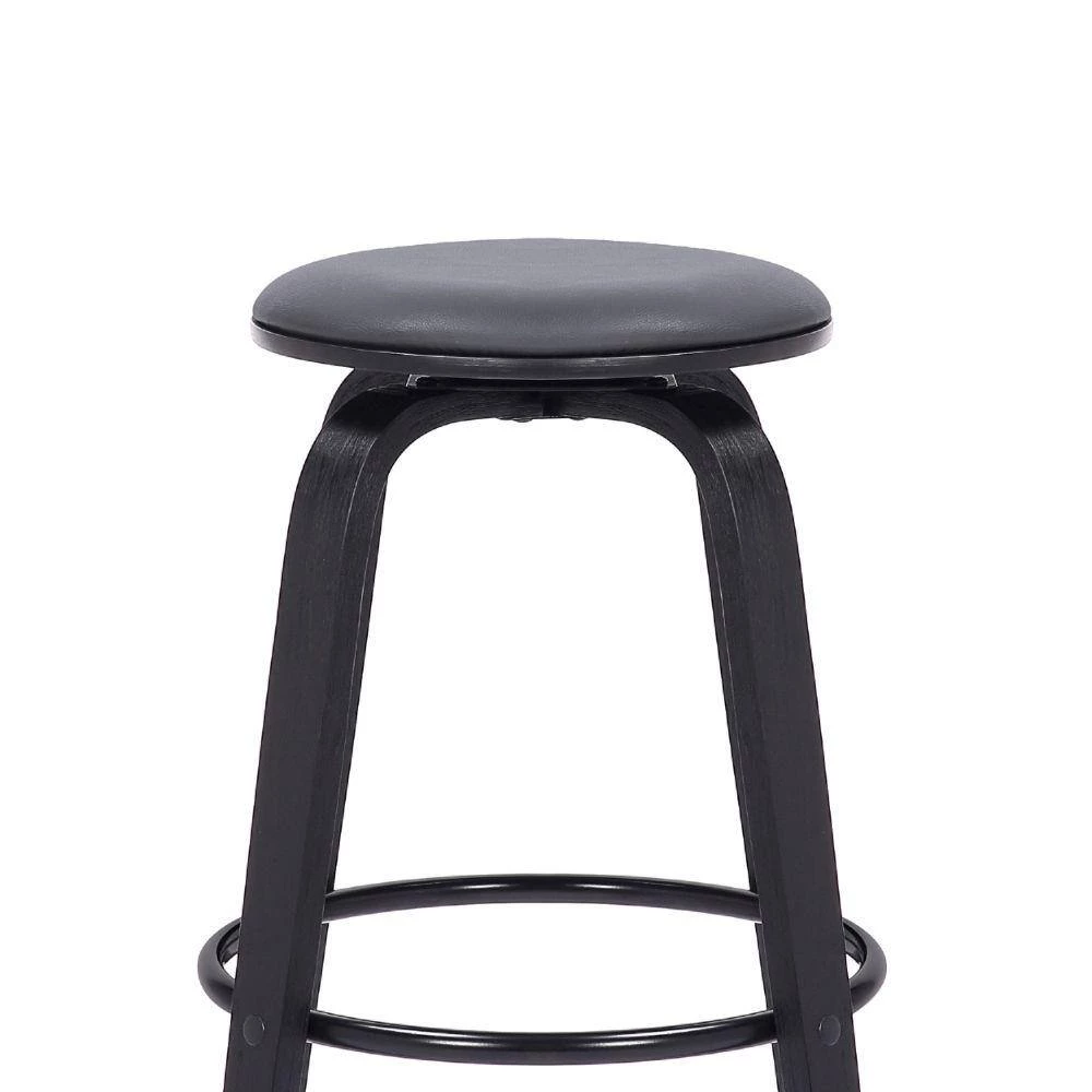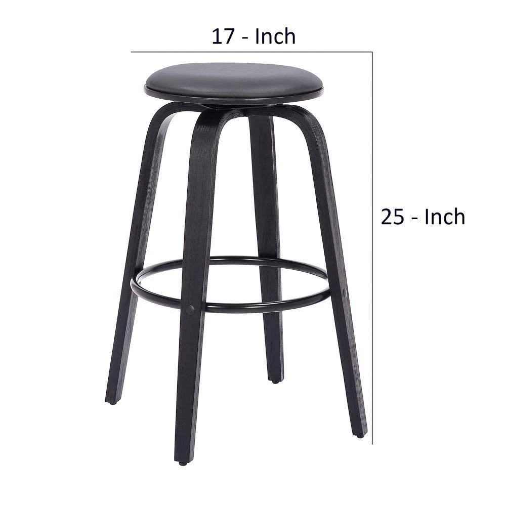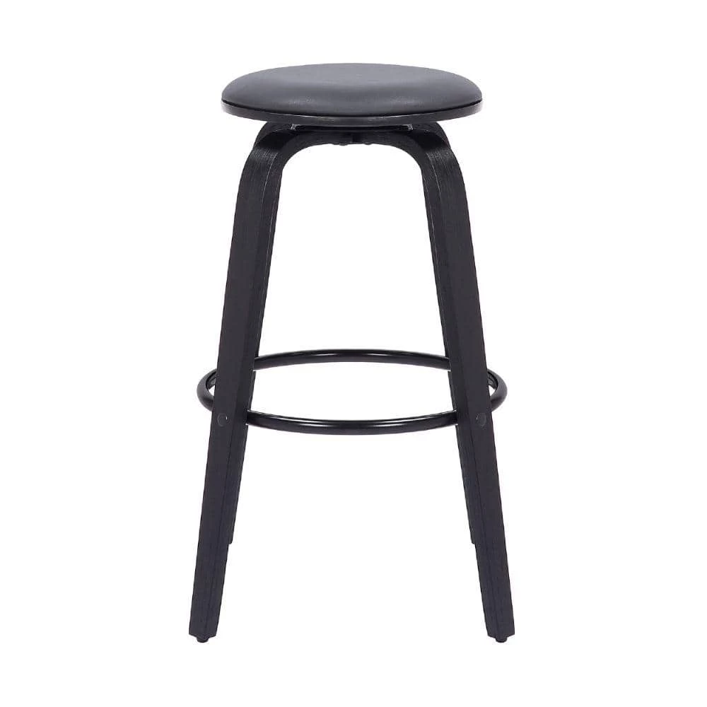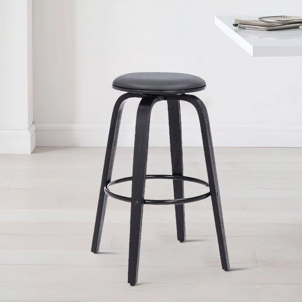 Designed in a simple and neutral style, this backless barstool is perfect to fit any kitchen. It comes with a round faux leather padded 360° swivel seat to keep up with the conversation. The inverted U shaped wooden legs with strategically placed circular footrest at the base to rest your feet.