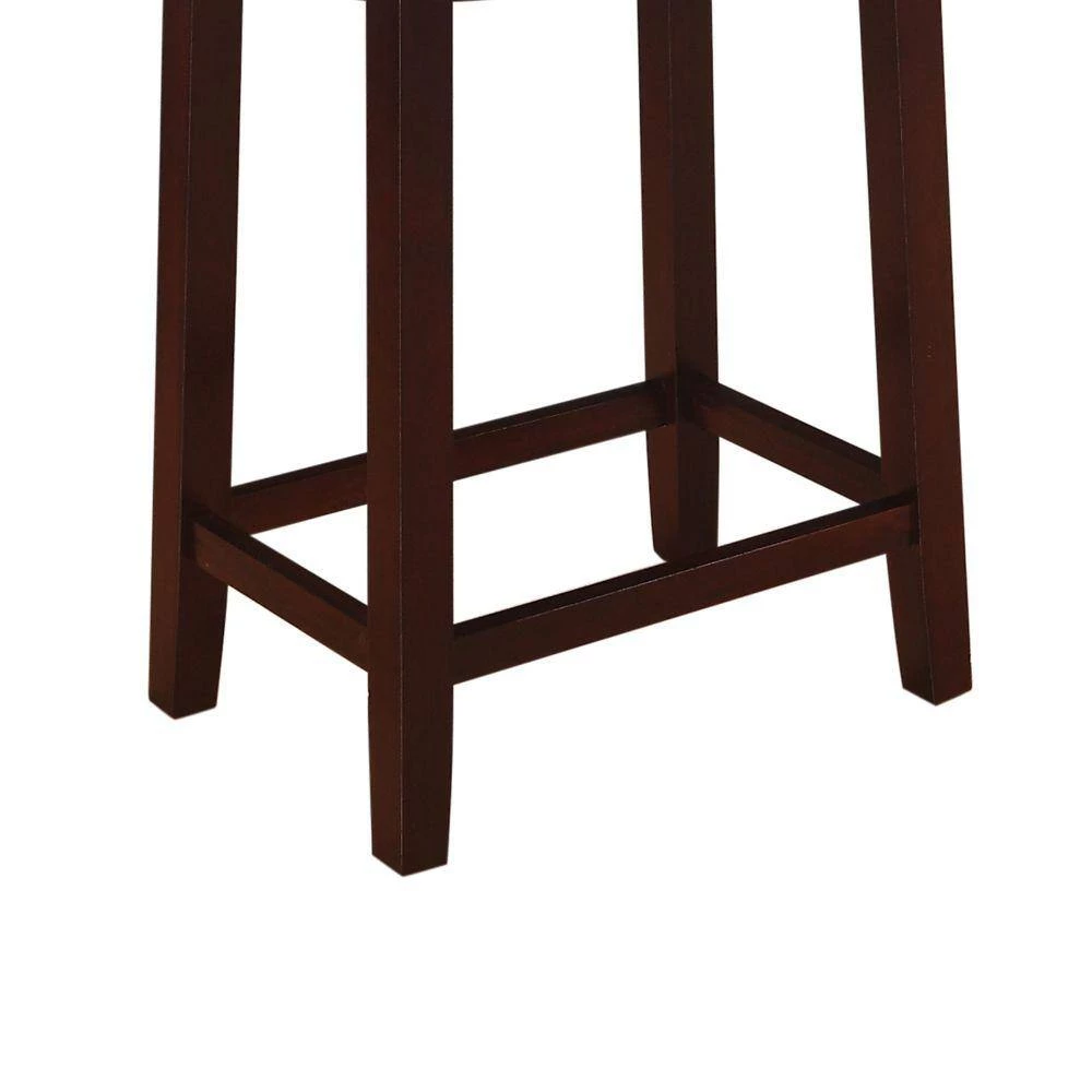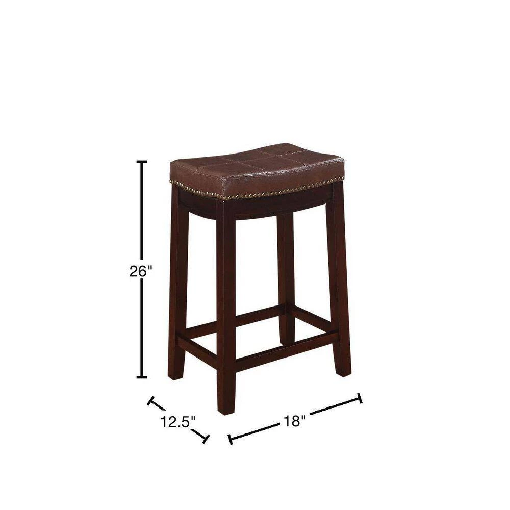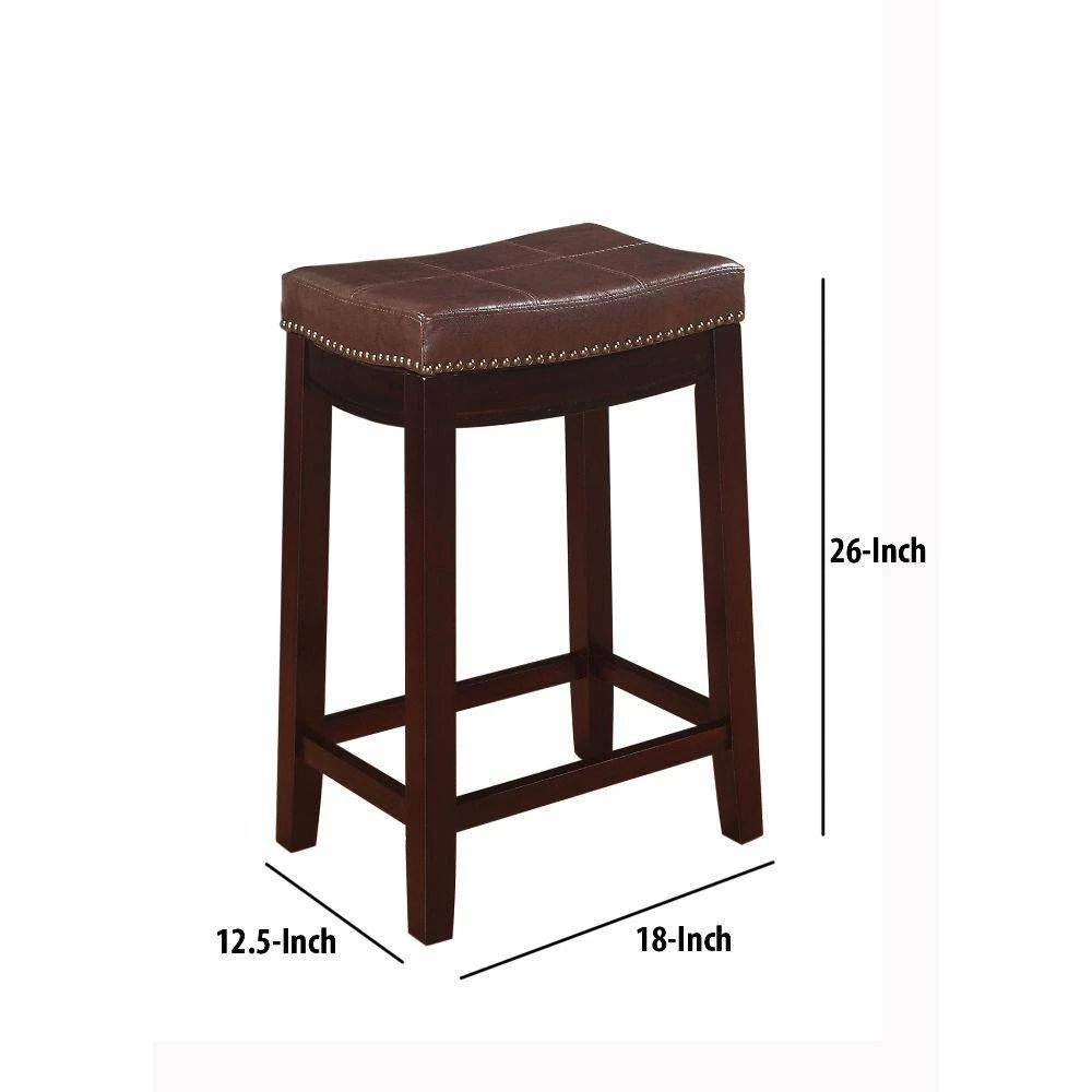 Transmute the look of your home with the addition of this counter stool which features a cushioned seat with brown faux leather upholstery and nail head trims accents, supported on slanted legs with footrest. It is made with a combination of rubberwood and solid wood in a brown finish. It will be a perfect addition to your bar counter or kitchen island to provide a comfortable seating experience.