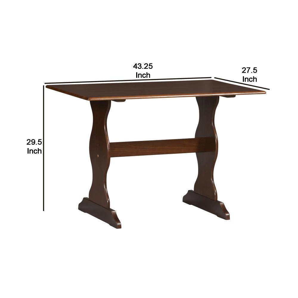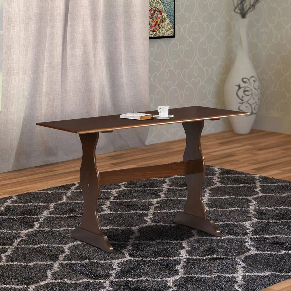 Place this nook table in any corner of your kitchen or dining area to give it a contemporary look. Made up of pinewood, this table can help with 1 to 2 people in dining. With a sleek design, it will fit into any space without disturbing the rest of your furniture. Featuring walnut finish and sleek pedestal design feet, it is perfect for having regular meals or small family gatherings.