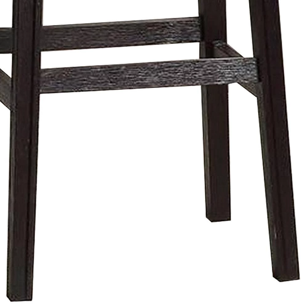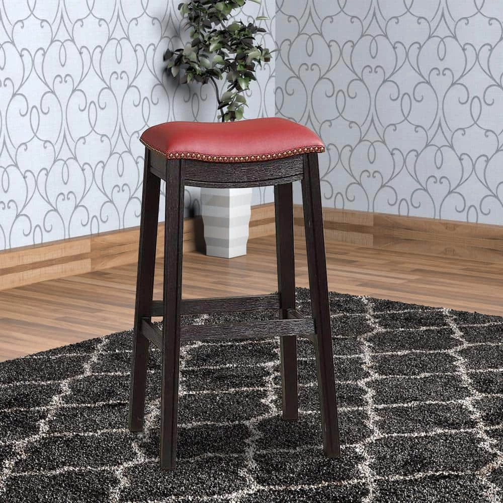 This bar stool will set your decor standards very high with its exemplary appearance. The stool features nail head trim details on the edge of the seat and is supported on straight legs with cushioned seats. The bar stool will add style to your bar or kitchen and dining space with its looks.