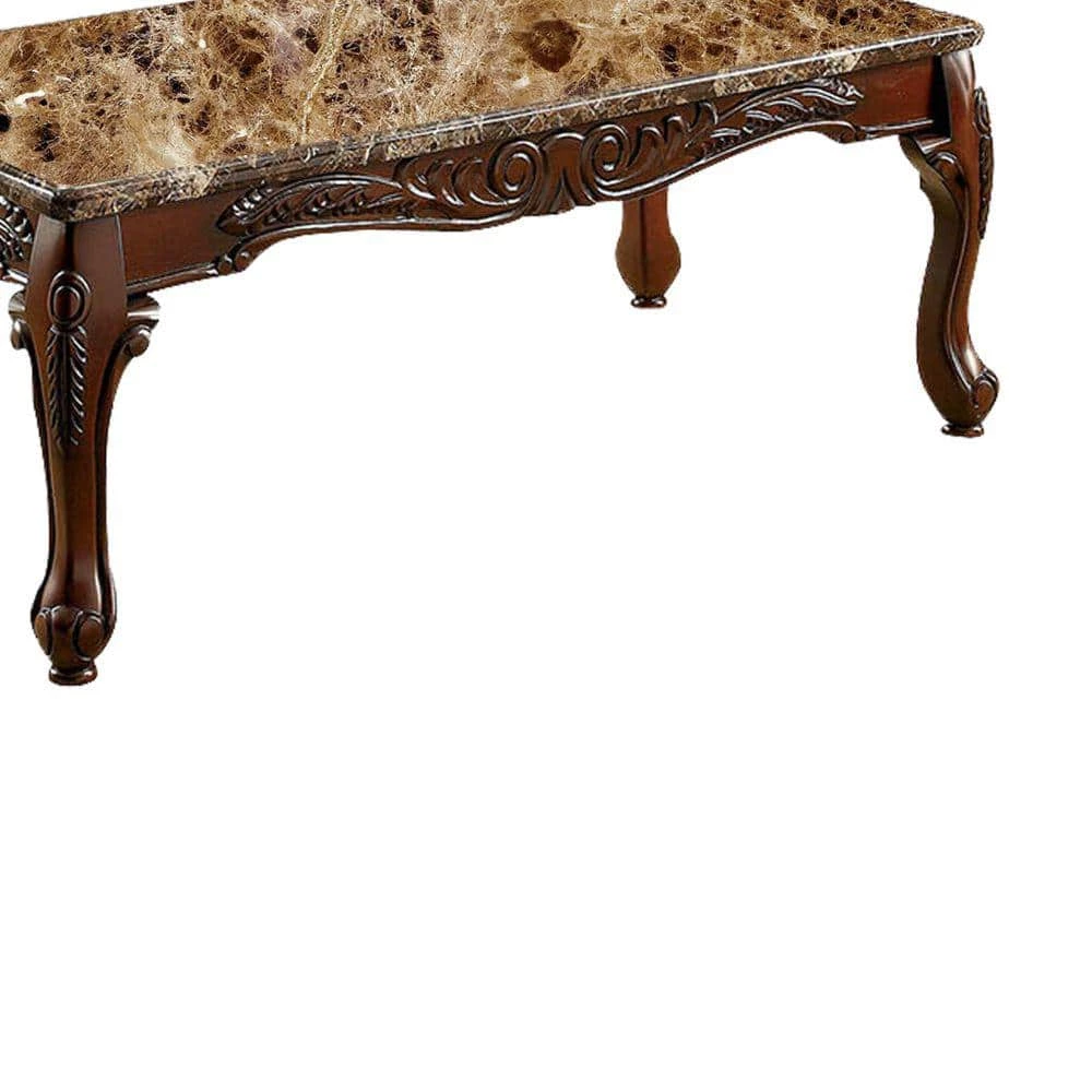 Amalgamate your existing decor setting by bringing in this transitional style Occasional Table Set which consists of 1 Coffee Table and 2 Side Tables with engraved details. Constructed from solid wood frame with marble top, it is accented with brown finish. It will enhance the look of your space.