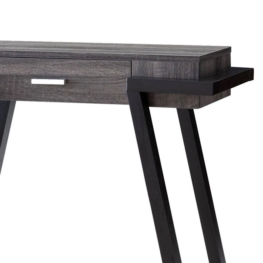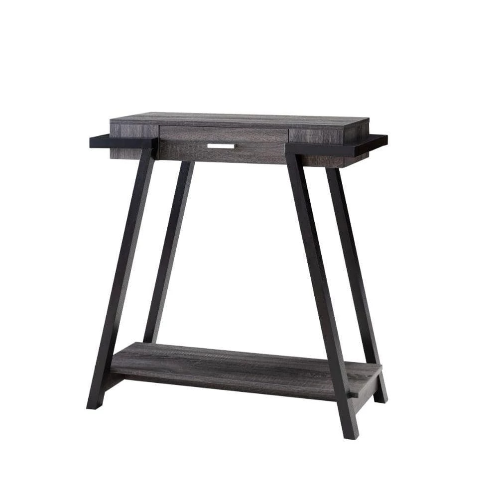 Transform the aesthetics of your home decor with the inclusion of this transitional style console table. Constructed sturdily from wood and MDF in distressed gray and black finish, it features 1 drawer accented with metal bar handle for easy accessibility and an open bottom shelf that offers ample space to organize your books and magazines. Supported on angled legs, it finds a perfect place in your entryway to impress guests entering your home.