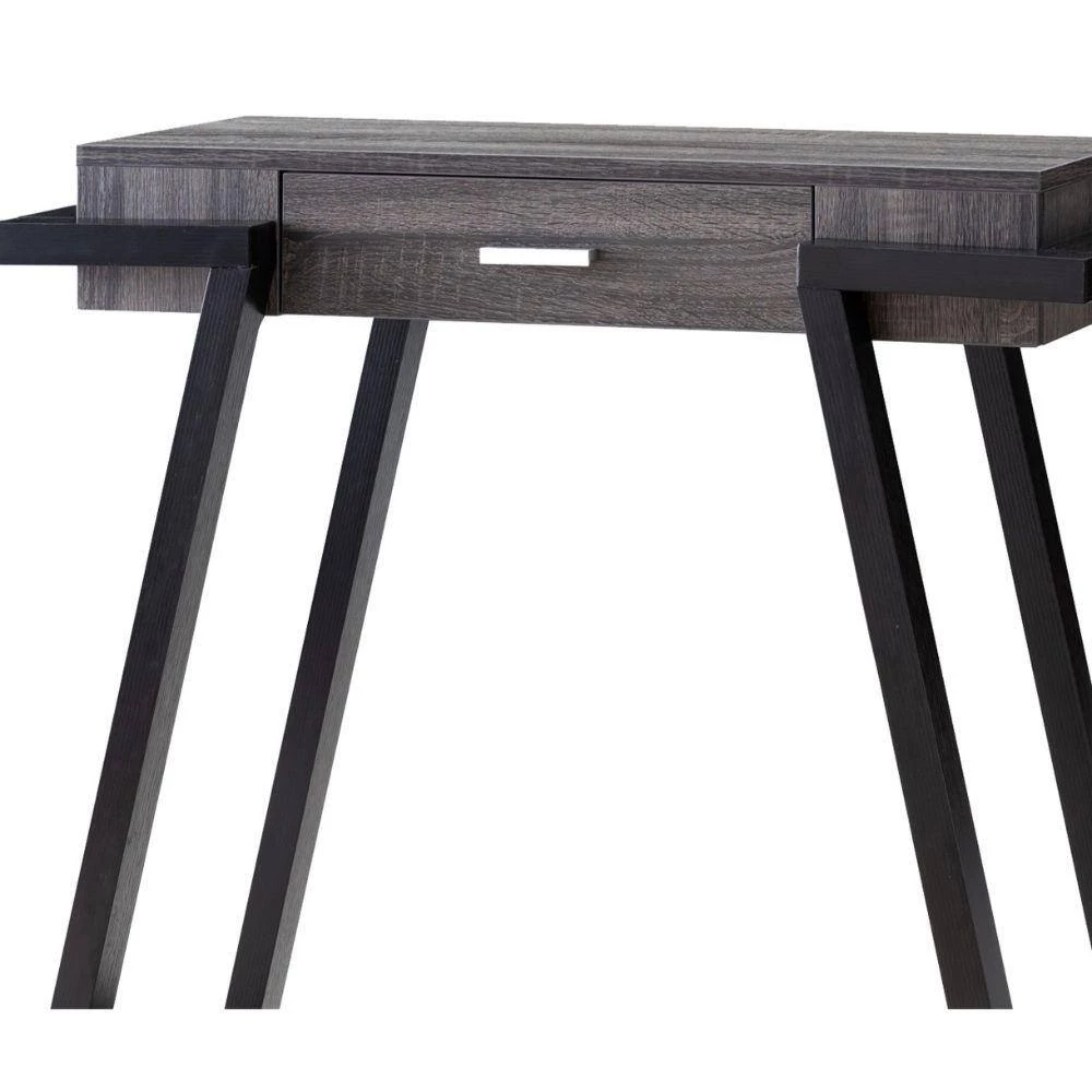- Supported on angled legs, it comes with 1-drawer and an open bottom shelf