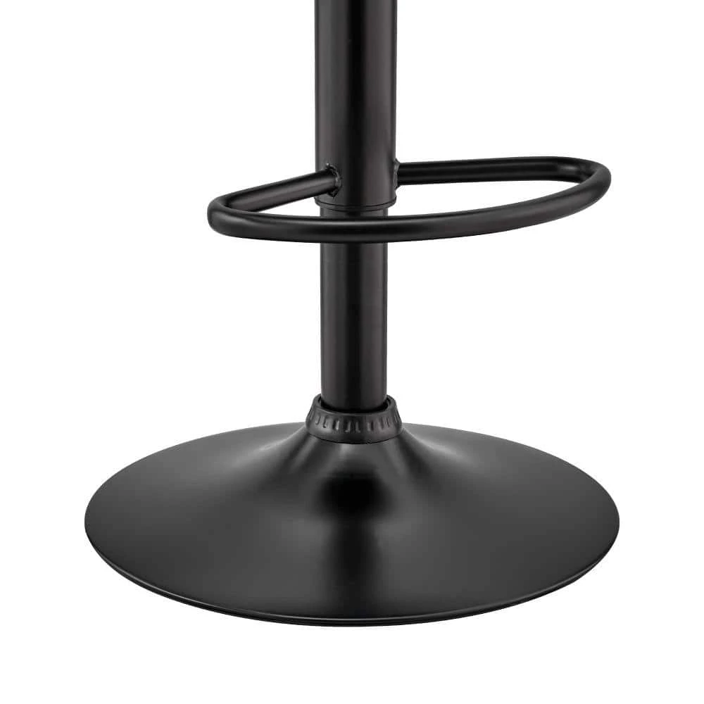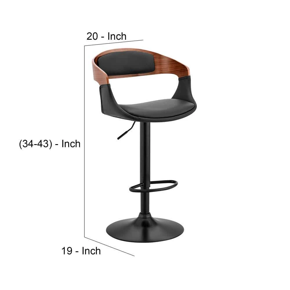 Add style and comfort to your home with this beautifully designed Bar Stool. Incorporating a black metal base with a ring footrest, it comes with a height adjustable lever and swivel mechanism to offer you a perfect seating position. The foam padded seat is upholstered in black faux leather, while the back is accented with walnut plywood that adds to the support.