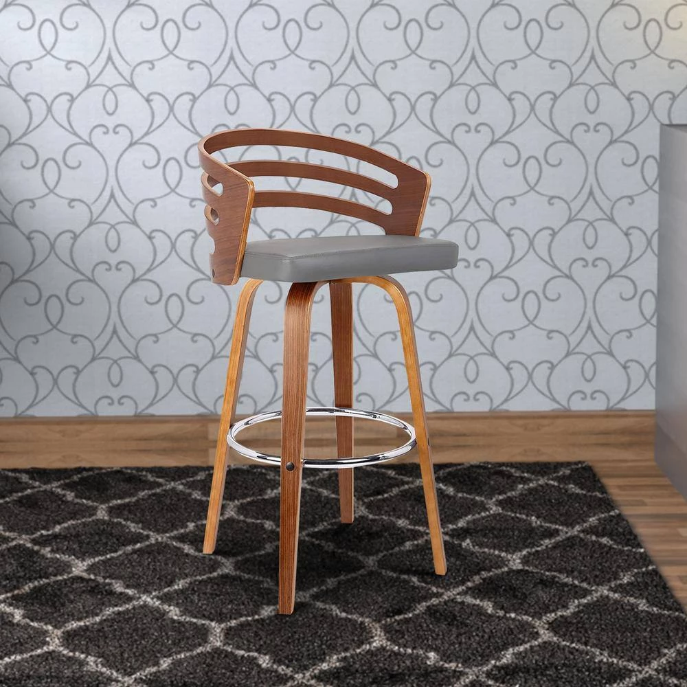 Enjoy your scrumptious meals on this Counter Stool which offers a padded seating. It comes with curved cut out backrest. Constructed from the combination of poplar wood and metal. It is upholstered with gray color faux leather.