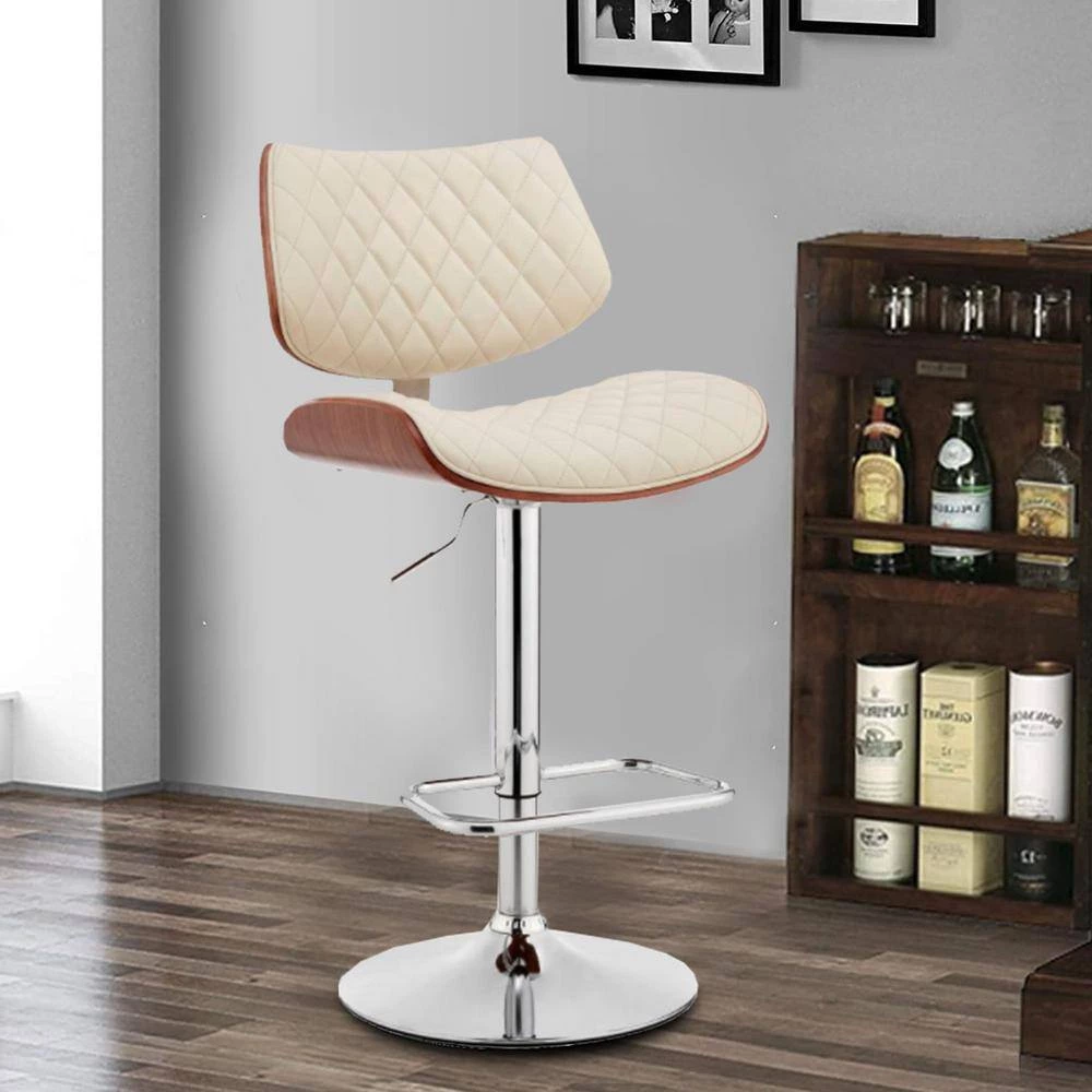 Designed with contemporary elegance, this height adjustable bar stool offers form, function, and style to your existing furnishing. The padded seating ensures plush comfort, while the cream faux leather upholstery with stitched details offers visual appeal. It comes with a swivel mechanism and a rectangular footrest that add to its versatile design.