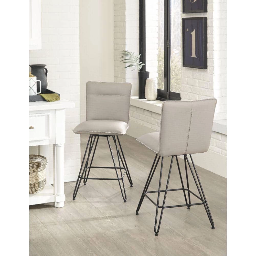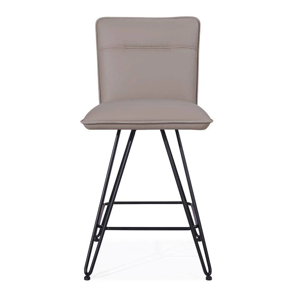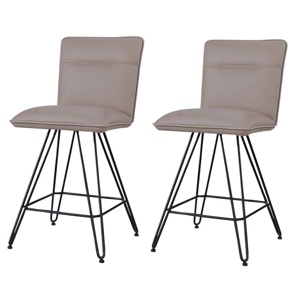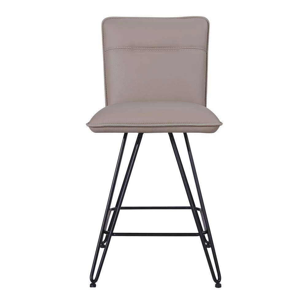 Perfect for your updated counter height dining table, this Counter Height Stool has a sleek style and luxurious comfort, available in a set of 2. Supported on black finish hairpin metal legs, this stool feature a taupe brown leather upholstered cushioned seat and back that provides superior cushioning for leisurely hours of thoughtful conversation. Accented with stitch details on the back, this stool has an armless design with welt trim detail that complements its overall look. Pull it up to the kitchen island for dine and dash meals, or use it to round out the home bar ensemble.