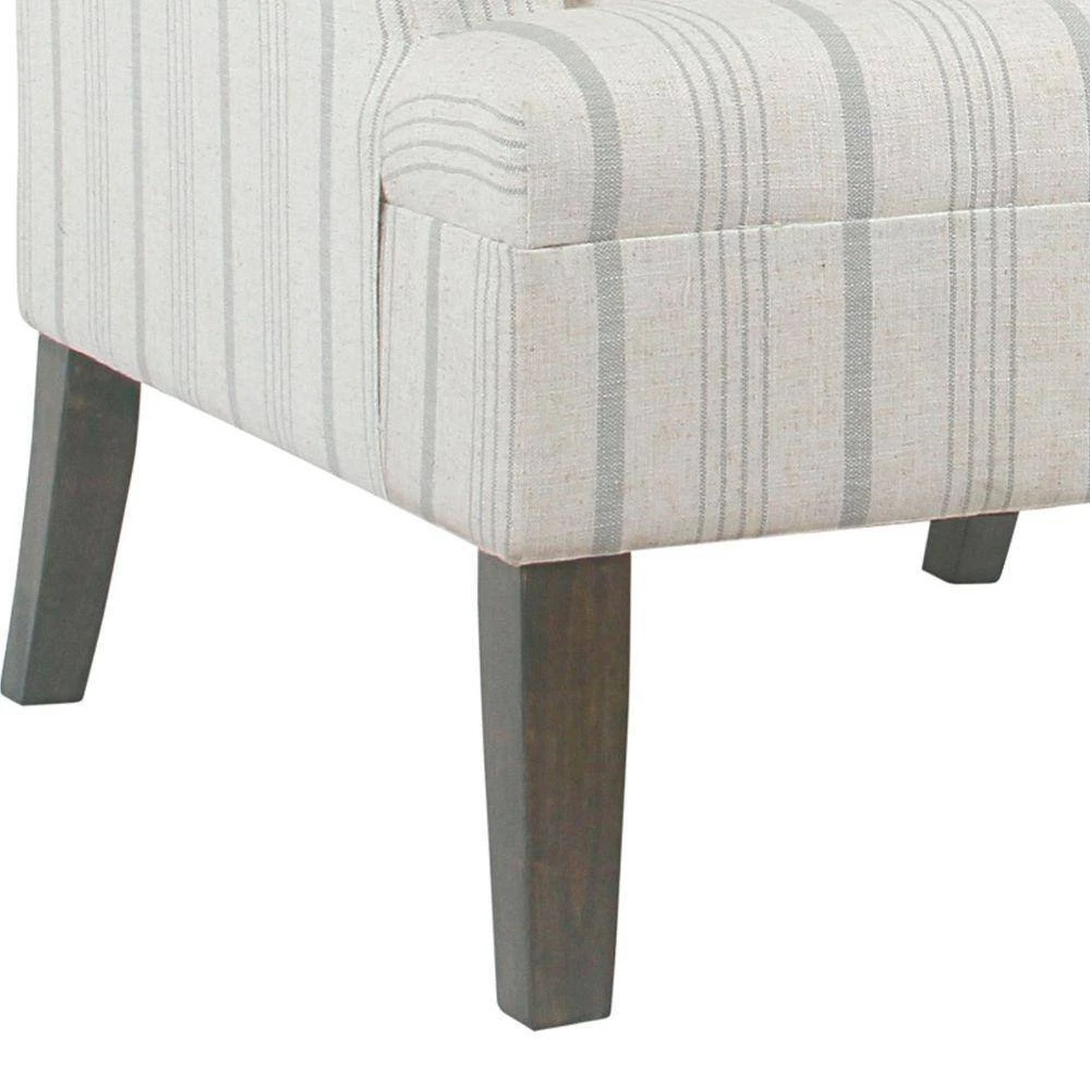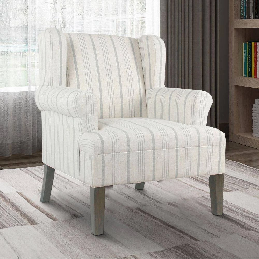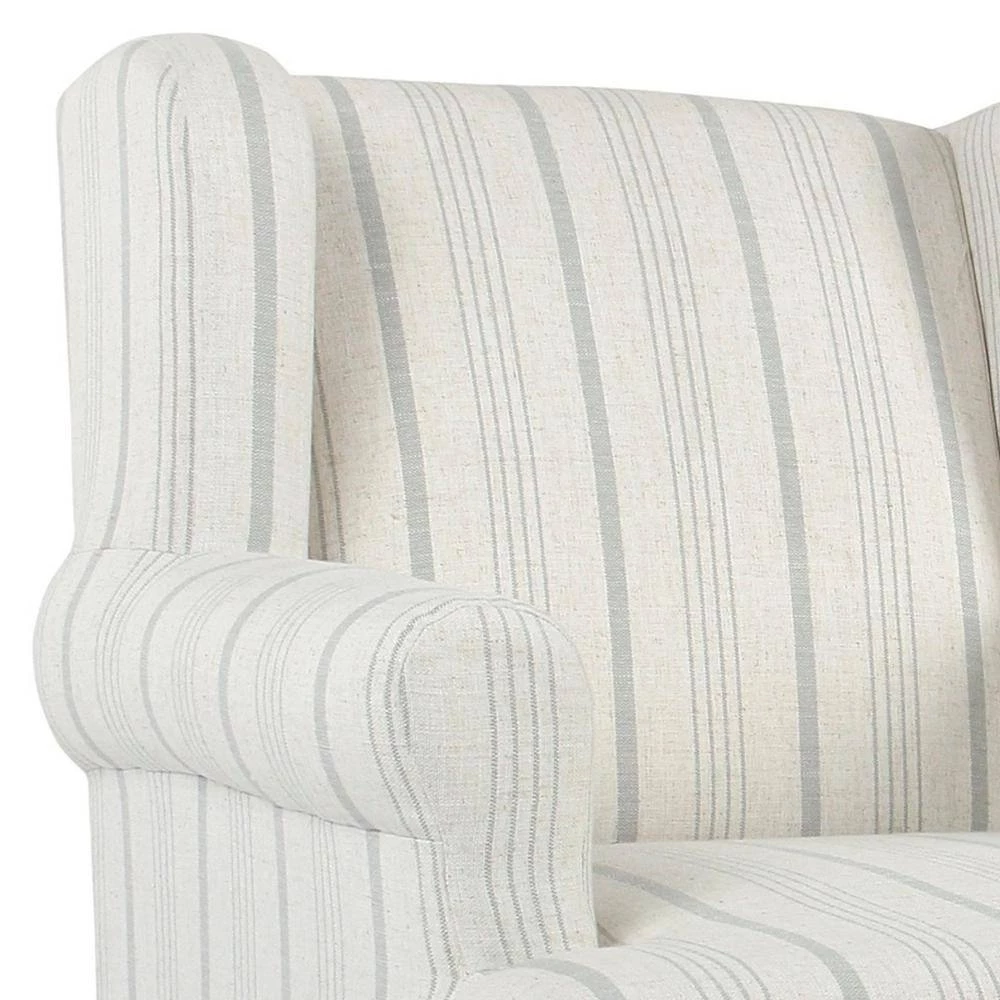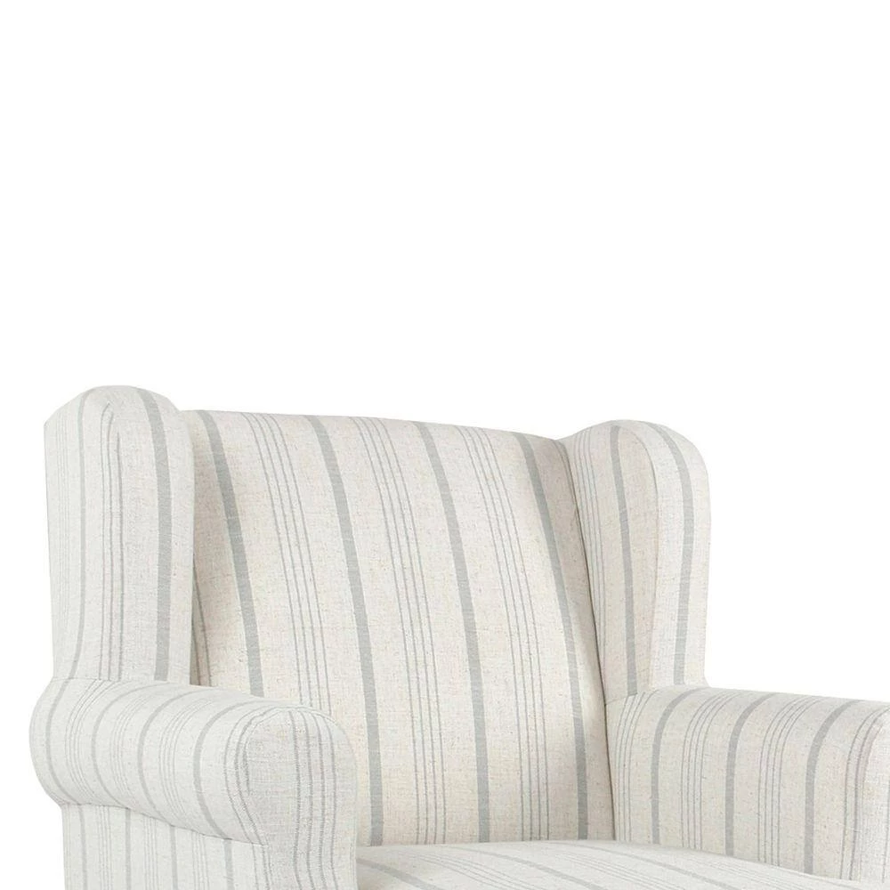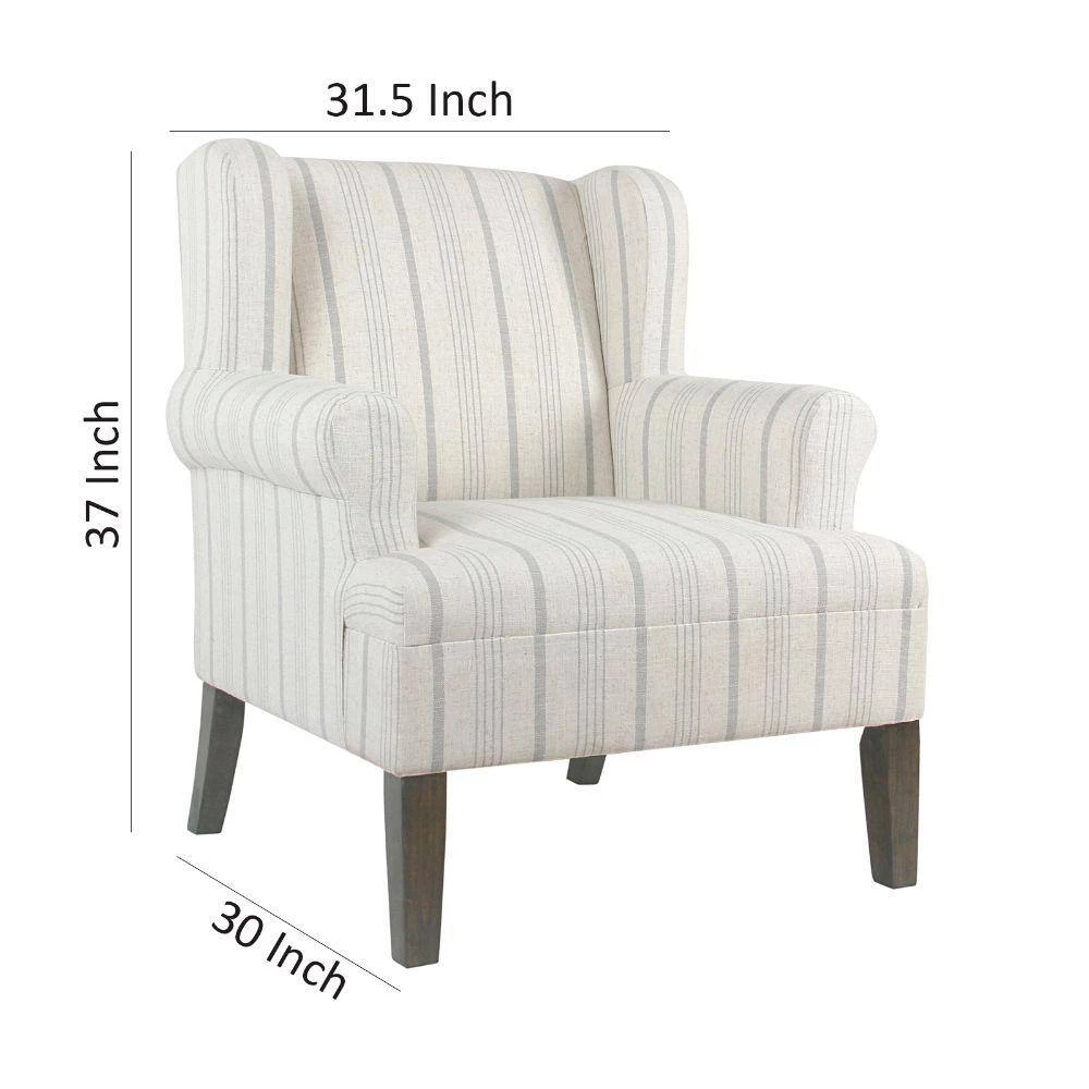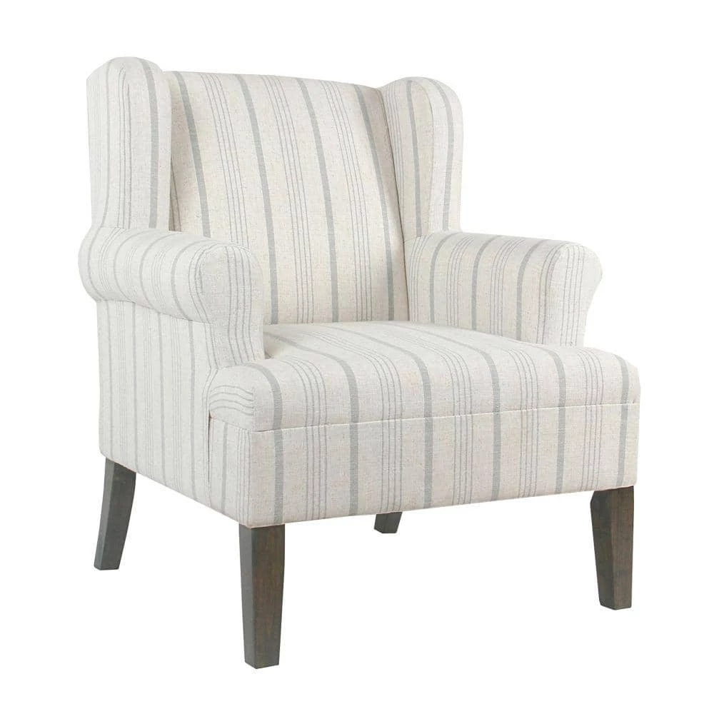From a living to a master bedroom, add a cool look with comfortable extra seating with this Accent Chair. Featuring a curved wingback and rounded keyhole style armrests, this chair will provide you a comfortable place to curl up and read in. The chair is upholstered in a striped poly-linen fabric and is completed with seat and back cushions for extended support. Add this chair in your living room to offer guests a cozy seat or place it in your bedroom as an accent chair.