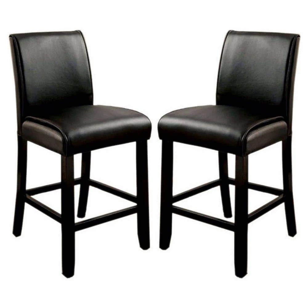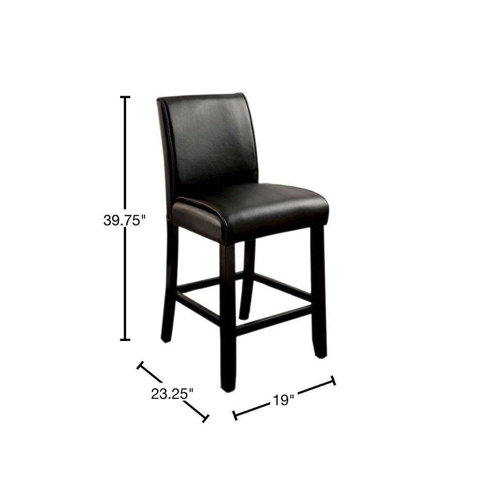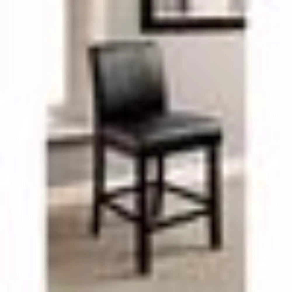 Add an elegant style to your home with the inclusion of this Counter Height Chair, available in a set of 2. It has leatherette upholstered low profile padded back and seat for a more comfortable experience. The tapered legs with crossbar support create a subtle charm that you will want to have in your home. Place it to any room for bringing a more classic look.