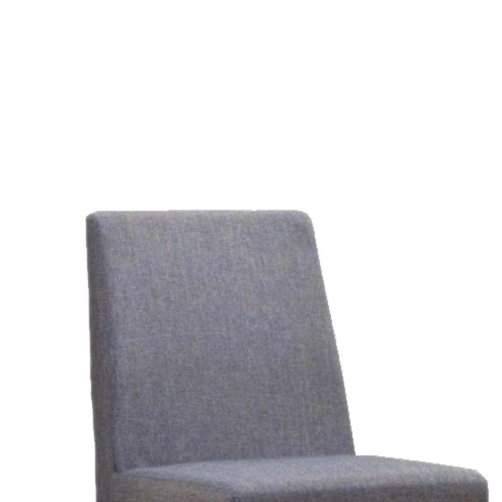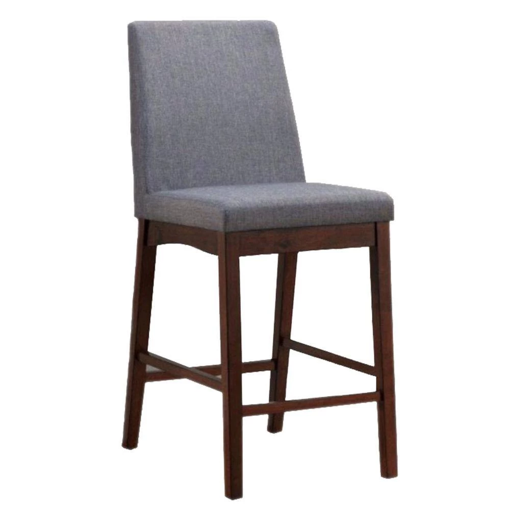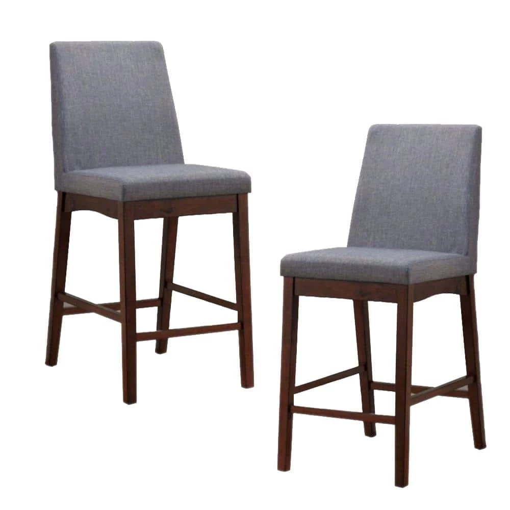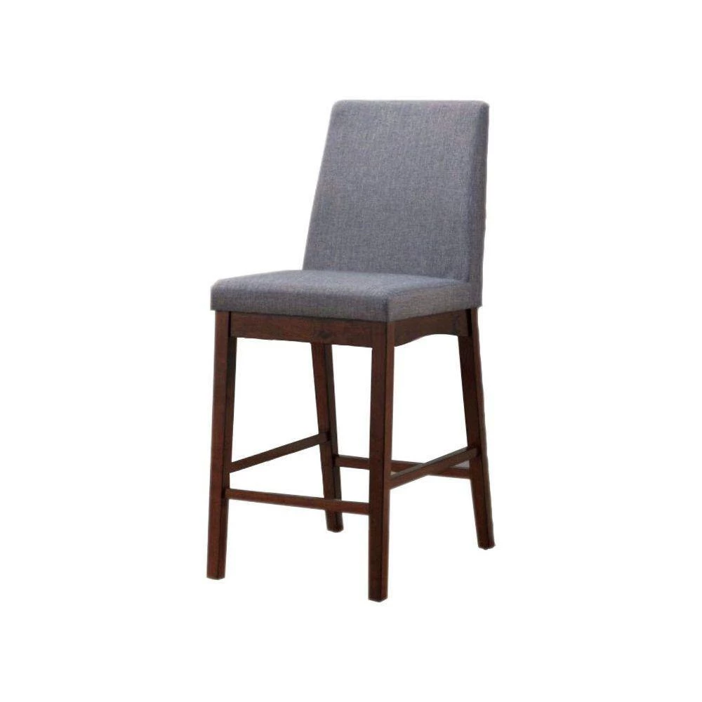Enjoy comfortable and sophisticated dining with this transitional style Counter Height Chair which offers a padded seating. Constructed from the combination of solid wood and veneer, it is upholstered with gray color fabric. It will enhance the look of your space.