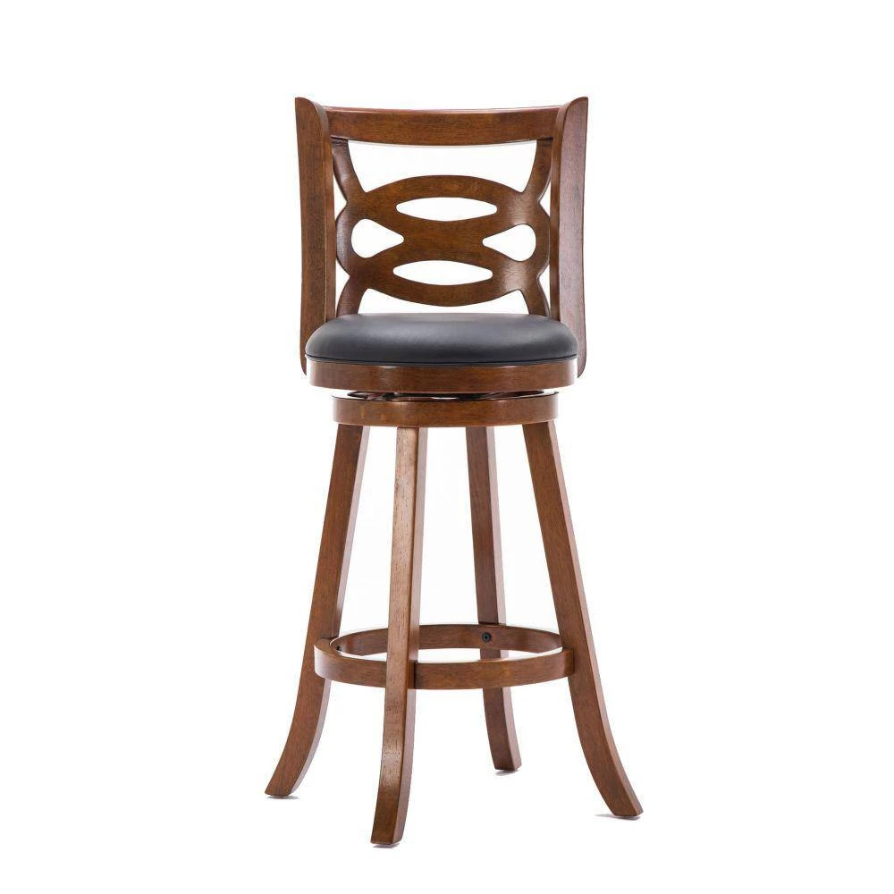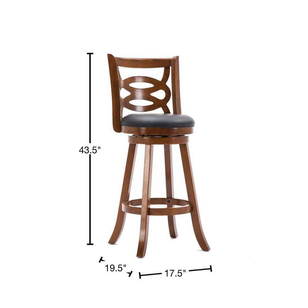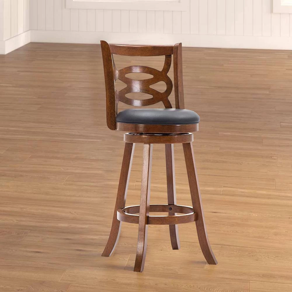 Style and comfort at its best, this bar stool is here to enchant with its mere presence. The curved open back and round sleek cushioned seat allows anyone to sit back and relax for a while. The flared legs with ring design stretcher completes the structure at the base and provides stability.