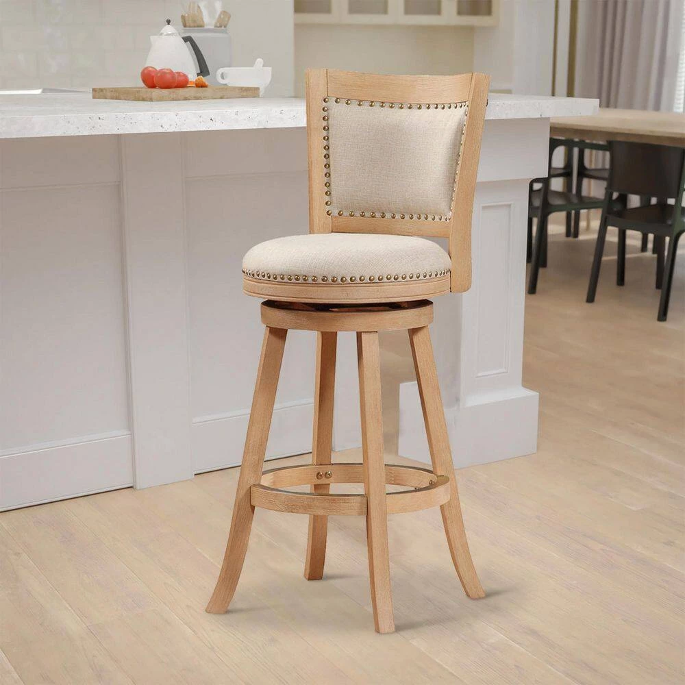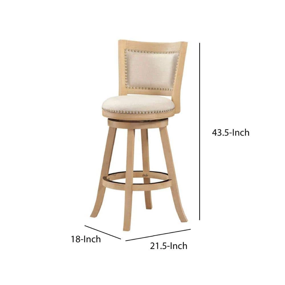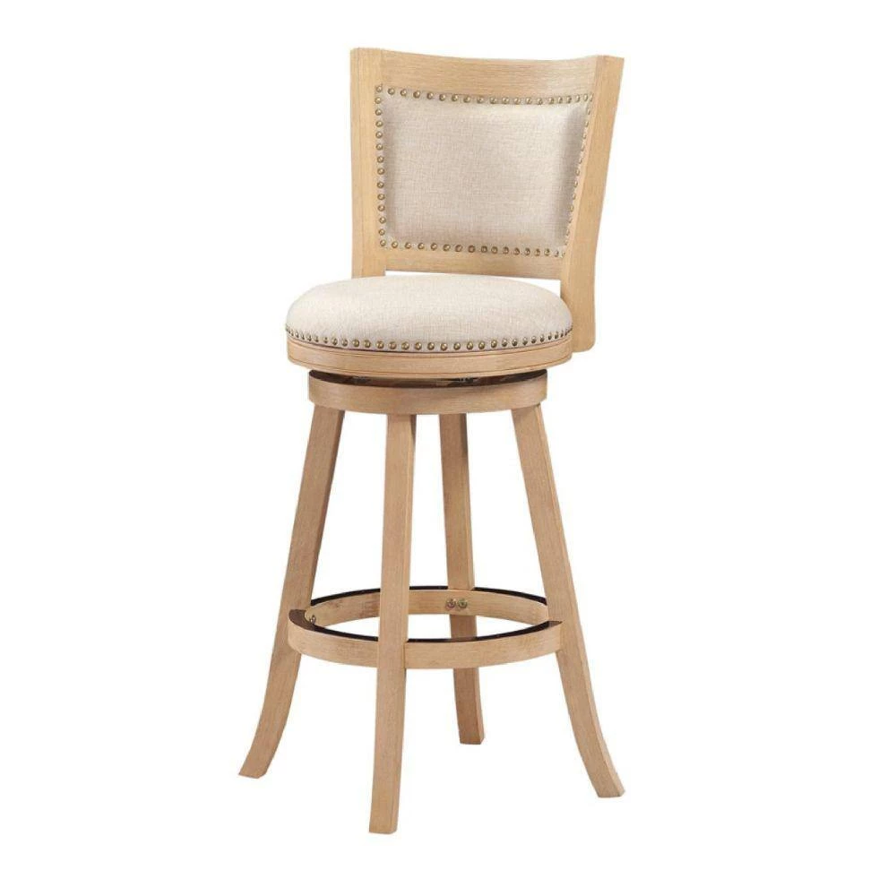 As perfectly welcoming as it is practical and well crafted. This barstool from our Kia collection is sure to be an ideal and delightful addition to your bar table. A sturdy, rubberwood frame done with a multistep wire brush finish, full ring footrest, seat and backrest with antique brass nailheads and sturdy metal kick plate makes this piece as quietly striking as it is openly gorgeous.