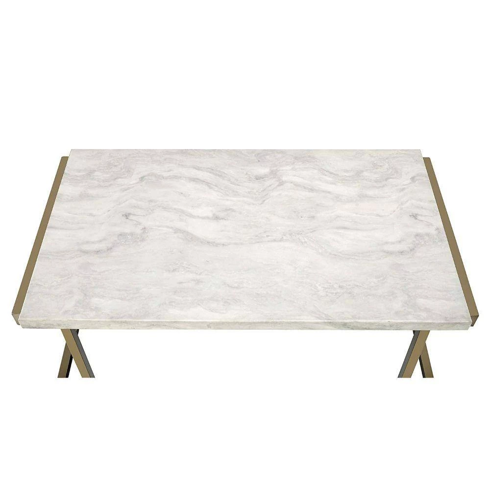 - Sturdy metal and marble constructed coffee table finishes contemporary look