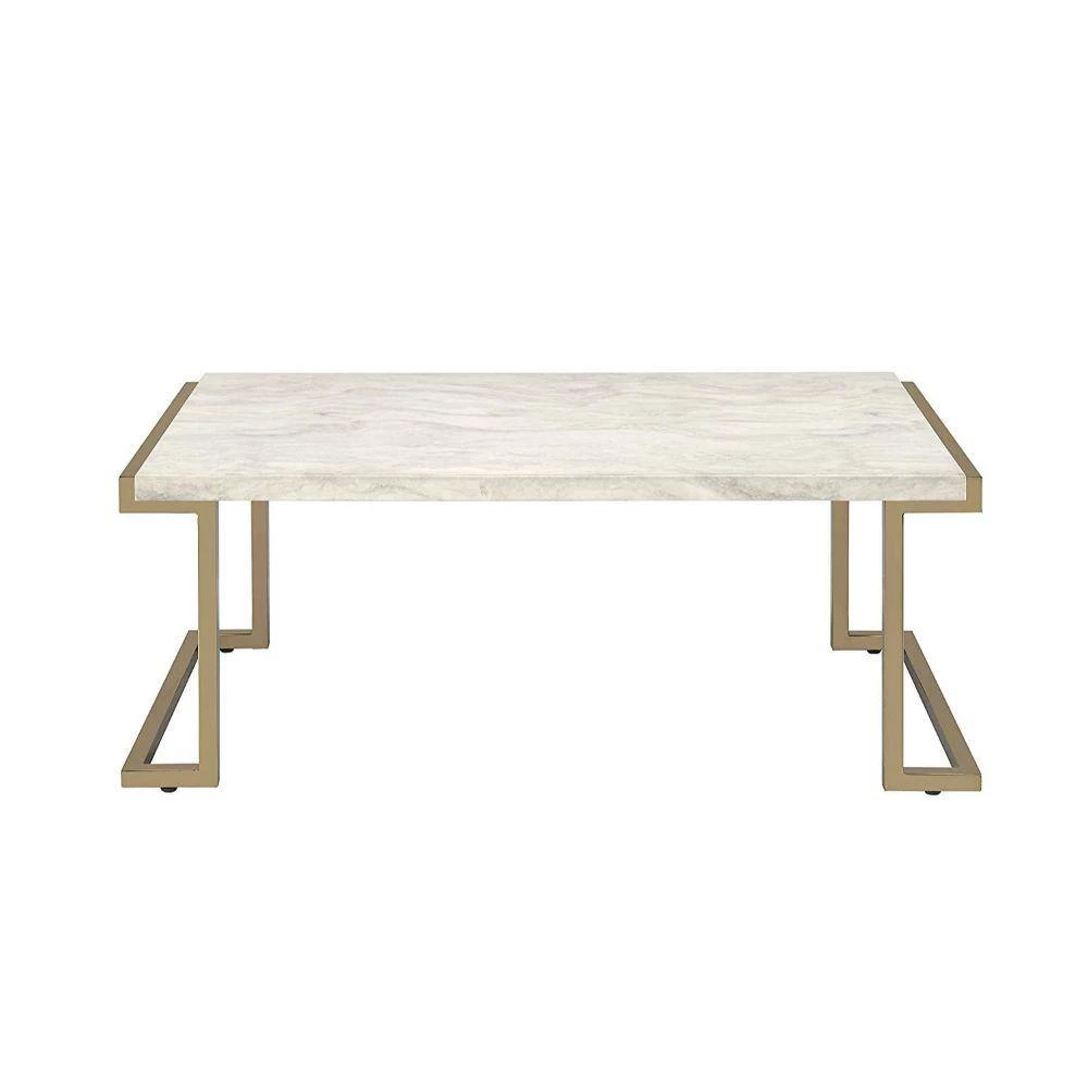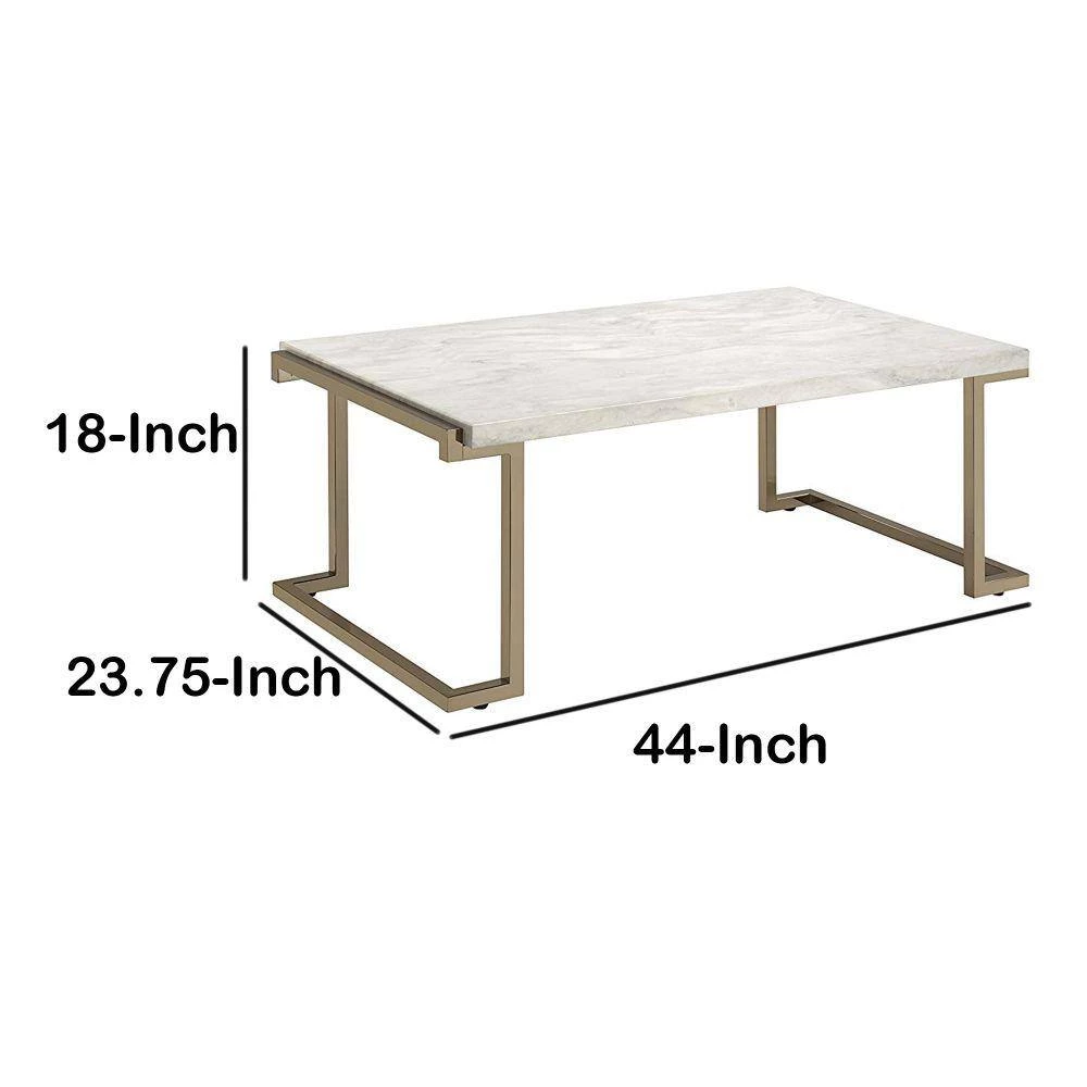 This coffee table will become the most stimulating element of your living room. Constructed sturdily, this coffee table features a faux marble top in a white finish and is supported on a gold finish sturdy base that invigorates the overall construction. Put this coffee table in any area of your living room or entry path and this will not go unnoticed. This contrast color table blends in perfectly with any furniture style.