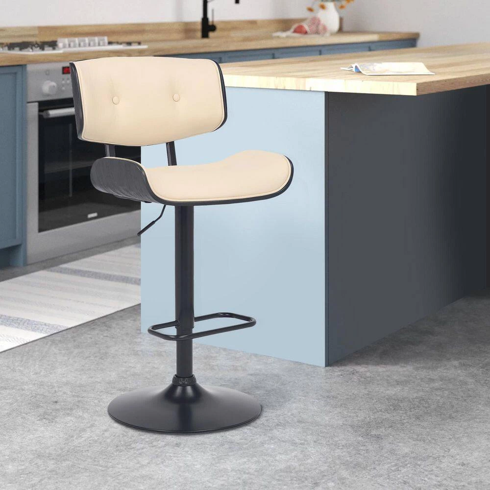 Amplify the aesthetics of the space with the inclusion of this bar stool. Upholstered in leatherette, it has curved button tufted back and seat that allows 1 to sit back and relax. The pneumatic lift mechanism adds to the functionality of the piece.