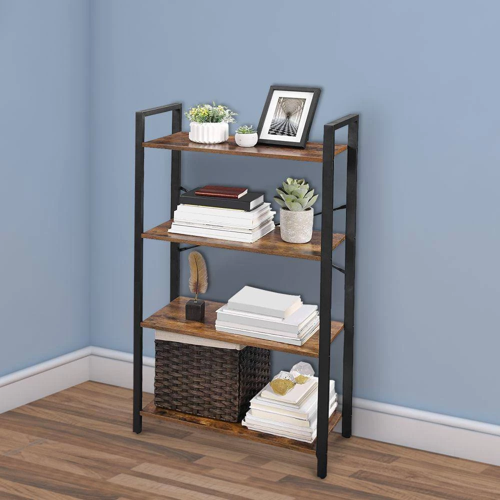 Provide a sophisticated abode to all your books and decor items by bringing in this industrial style Bookcase which comes with 4-tier storage space and showcases grain details. Constructed from the amalgamation of particle board and Iron, it is accented with rustic brown and black finish. It will add a modish look to your space.