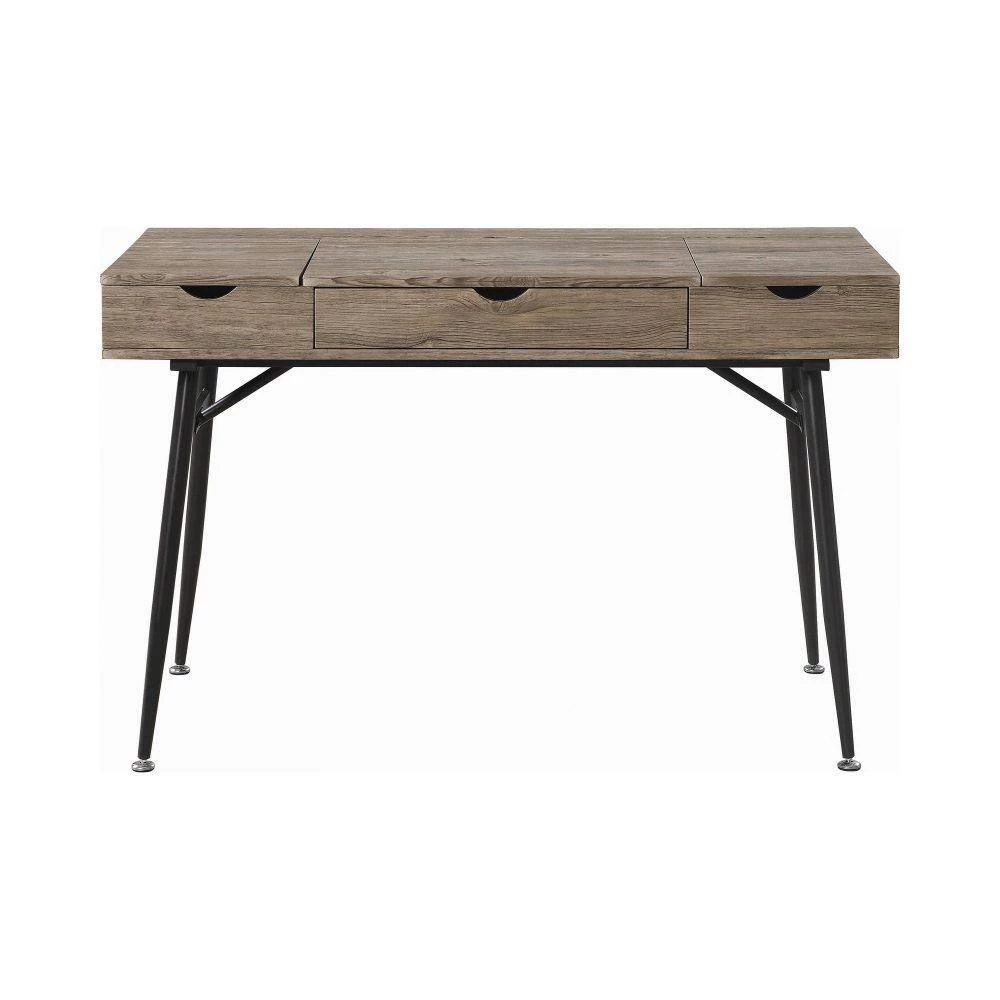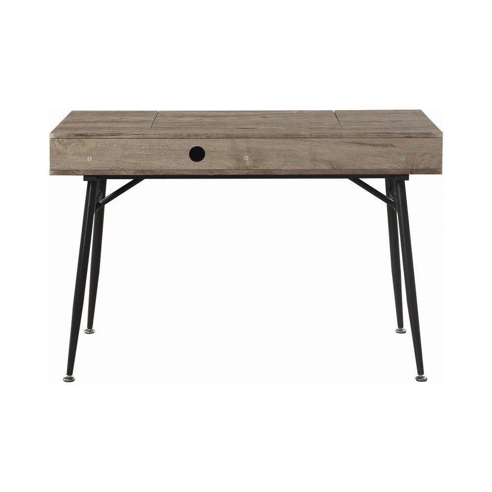 Accentuate your study space with the introduction of this sophisticated and stylish Writing Desk, which comes with a smooth gliding drawer and 3 lift top storage compartments. Constructed from MDF and decorative laminate. It is supported on angled legs.