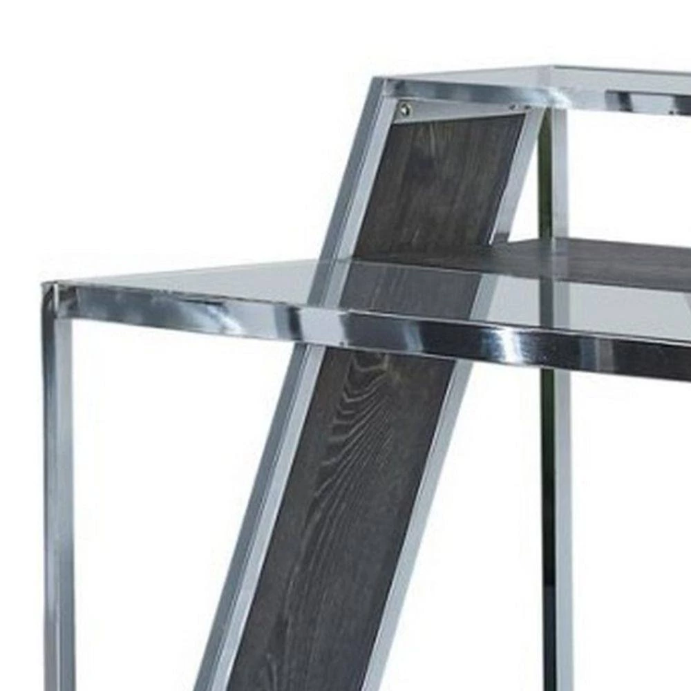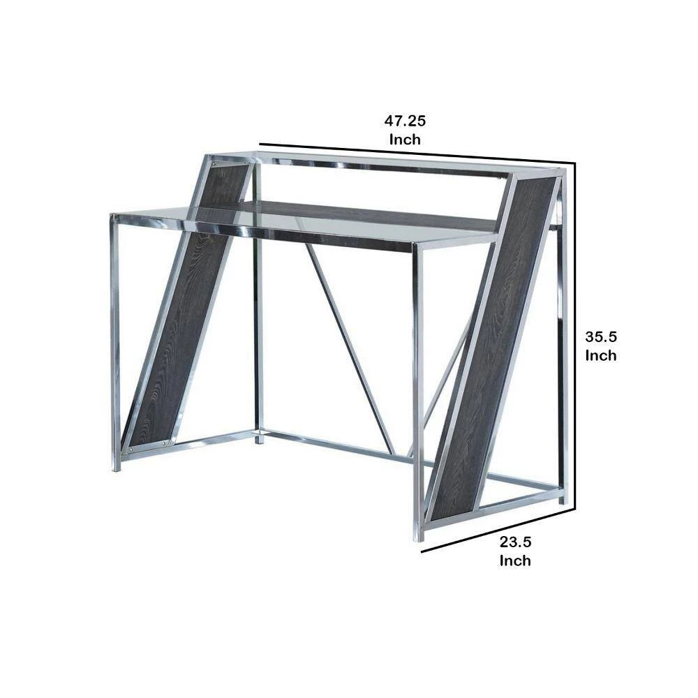 Contemporary style blends with technology to form this coveted Writing Desk which comes with elevated top for desktop and incorporates power outlets and USB docks. Supported on metal base with wooden accent. The clear tempered glass topping makes it an ideal addition to your place.