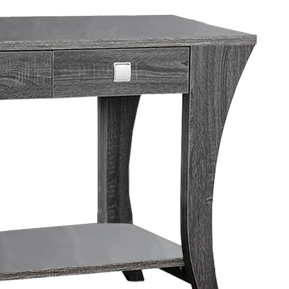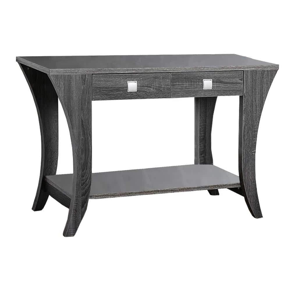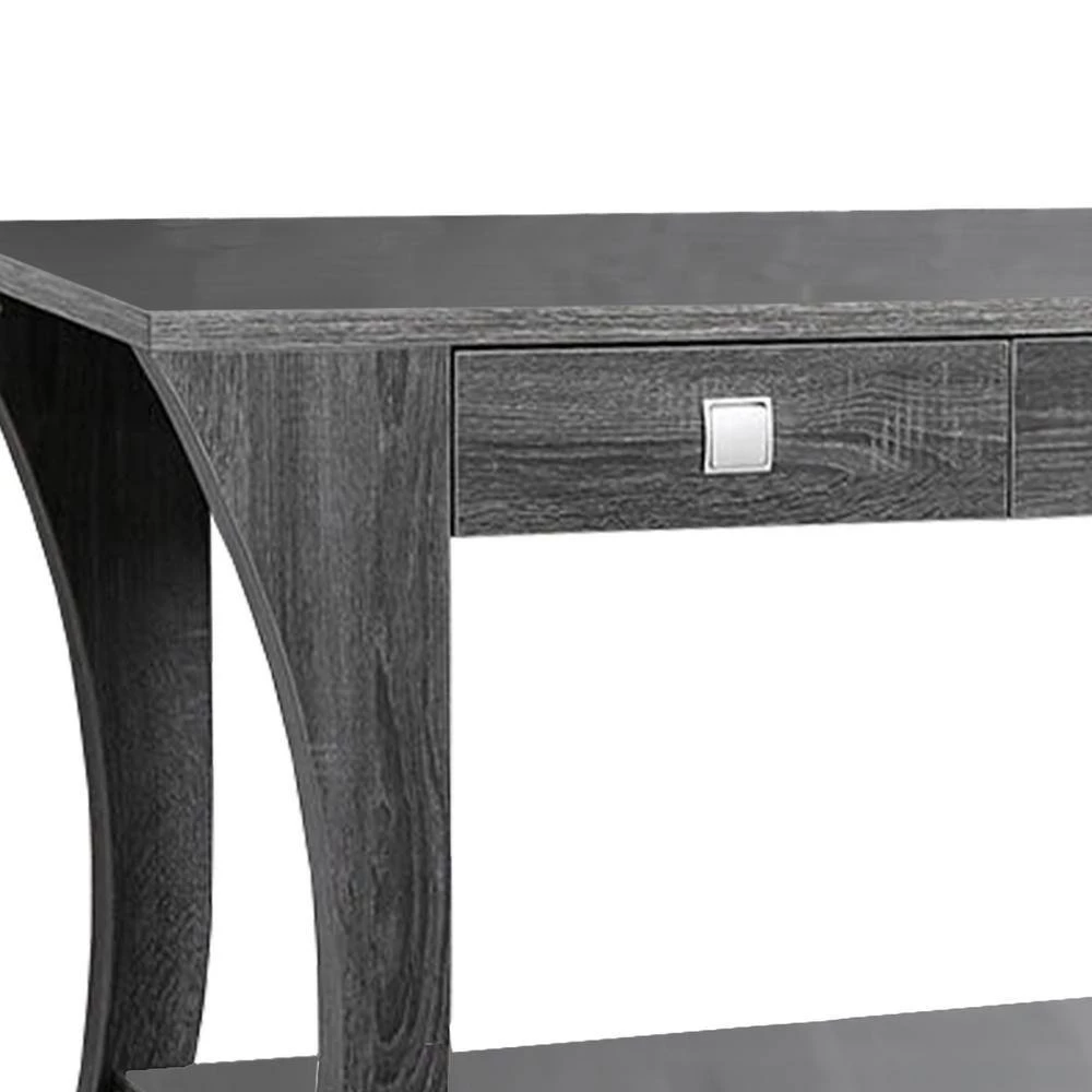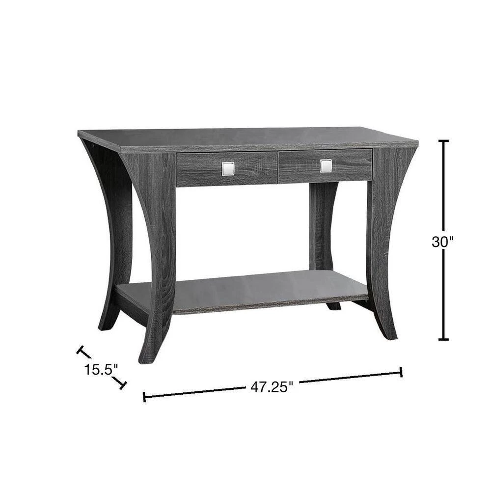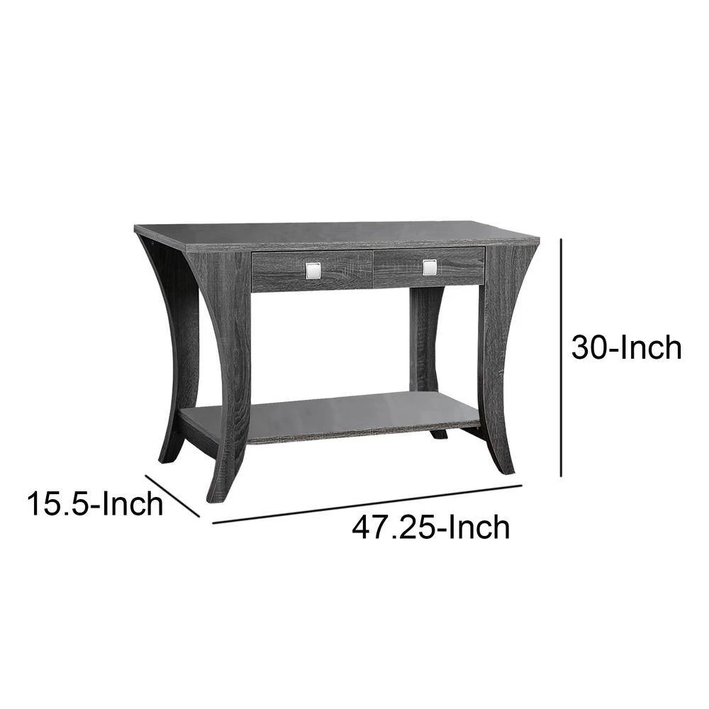 Keep books stowed behind your sofa or organize baskets of out the door essentials in the entryway with this classic Sofa Table. Constructed of wood for durability and finished in a gray tone, this sofa table will blend effortlessly into your existing decor. It will enhance the look of your space.