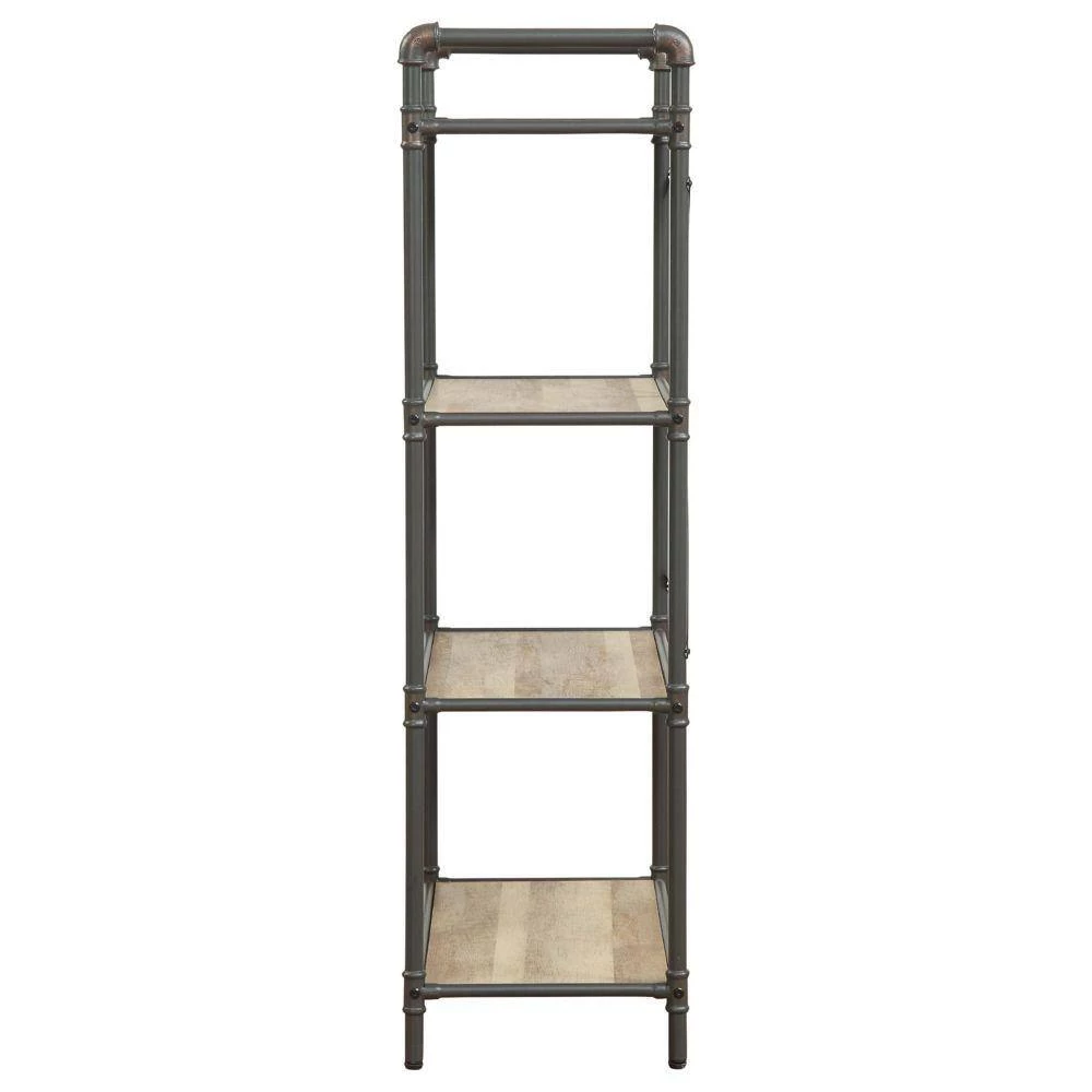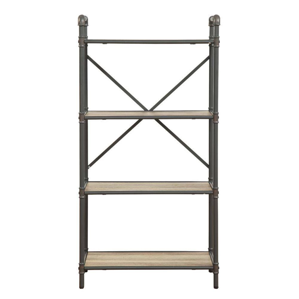 Create and mini library or collection at your home with the inclusion of this amazing bookshelf. It features a tubular piped metal frame in a gray finish, incorporating 3 wooden shelves for storage and an X shaped support at the back. It is supported by tubular legs, providing stability and durability.