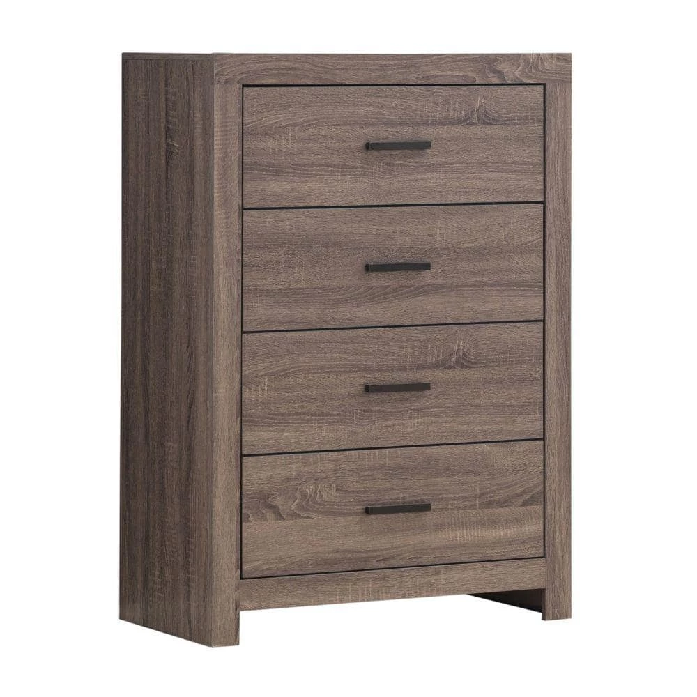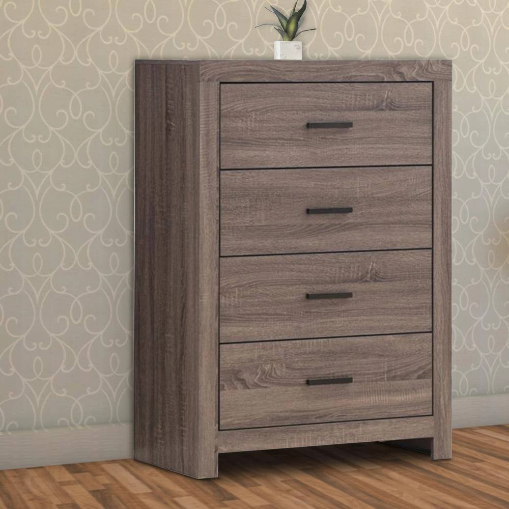 Compliment and contrast the look of your bedroom area with the inclusion of this chest. 5-drawers with metal bar pulls provide ample space to keep chargers, books, pens and medicine box. The side panel support lends stability and strength. It will enhance the look of space.