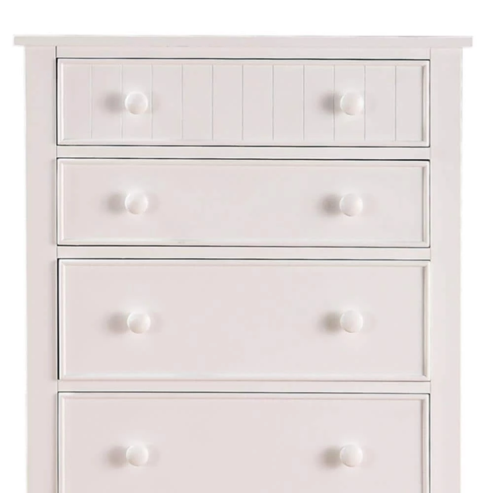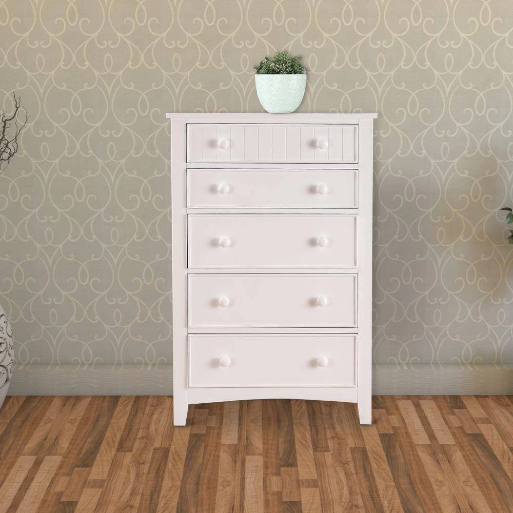 Enjoy the contemporary look of minimal trend using this white accent chest. Combining the smooth and delicate aesthetic of particle board, medium density fiber wood with the modern reflections of 5-drawers, this chest is a great addition for a clean, contemporary setting. Ultimate for bedroom purpose.