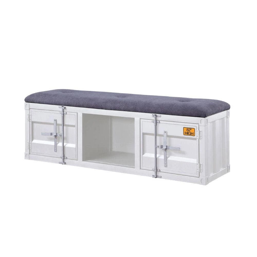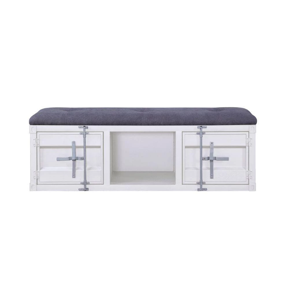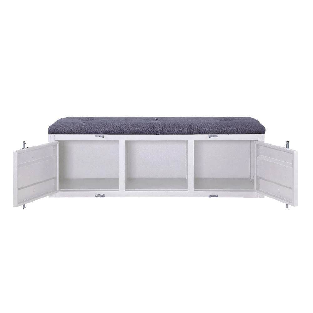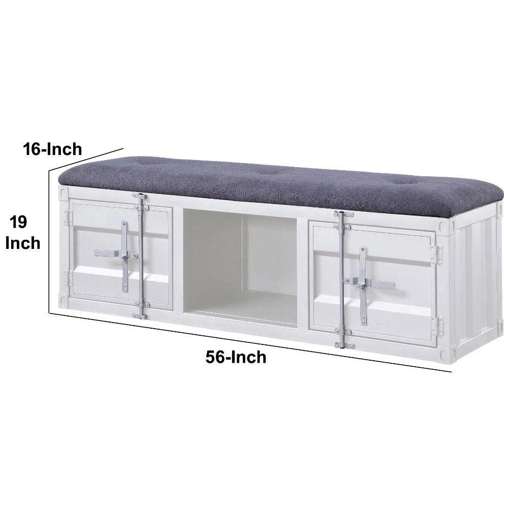 A perfect addition to your living room or your bedroom, this bench features 2-spacious cabinets and an open compartment which can be used to place your books or magazines. Incorporating a fabric upholstered padded seat with tufting details which provides a comfortable seating experience for long hours. This bench is available in a white finish and will be a great addition to your home decor with added storage and style.