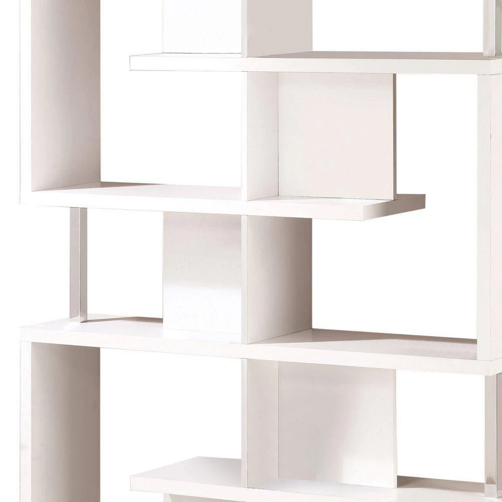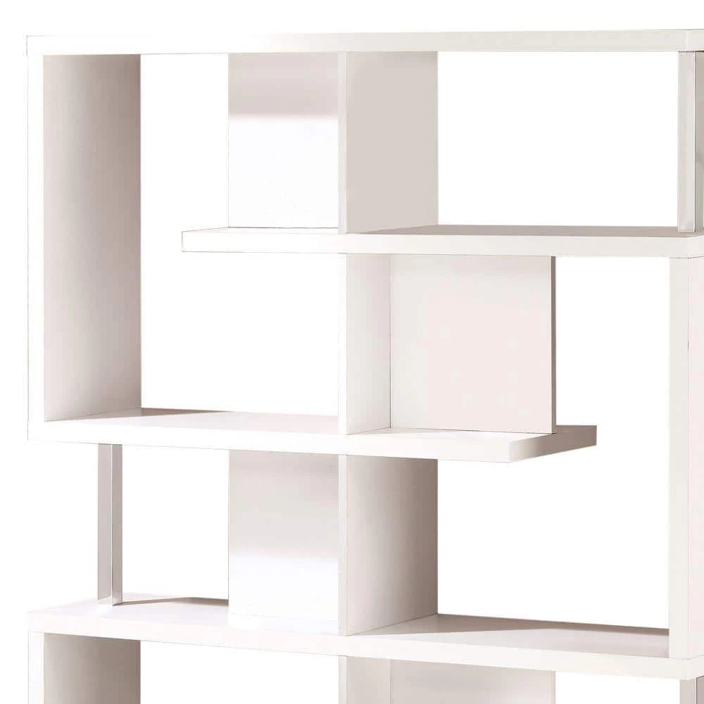 A geometric combination of large plus small compartments and give this bookcase a stylish, modern flair. Store and display items with this sleek white finish bookcase in a living room or office. Chrome support beams complete the its fun style. This bookcase has it all with versatile options and a unique design.
