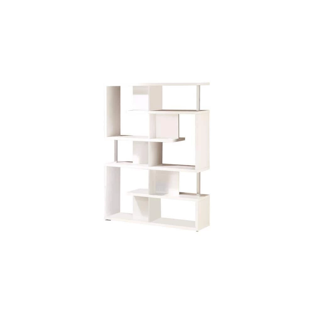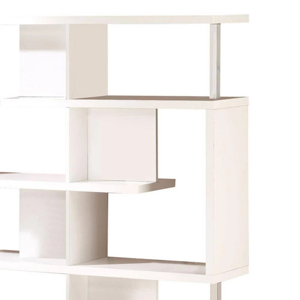 - Contemporary style bookcase in white finish with metal finish in chrome