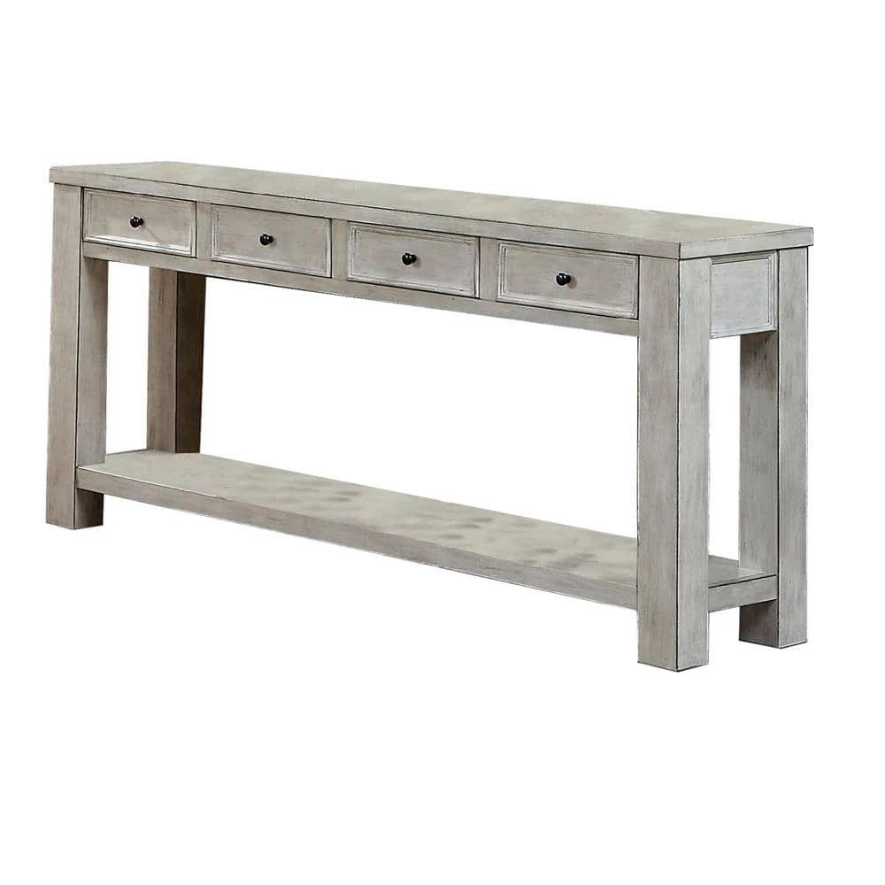Console Tables, a finishing stroke to your tastefully decorated home, are timeless accent pieces for your living room wall, lobby or entryway. With its range of 4-drawers and an open shelf, this product is a better organizer and more efficient showcase than your old mantelpiece. Store keys and keepsakes in the drawers and display memories and stories over those rustic old shelves. A one stop storage table that looks riveting and irresistible.