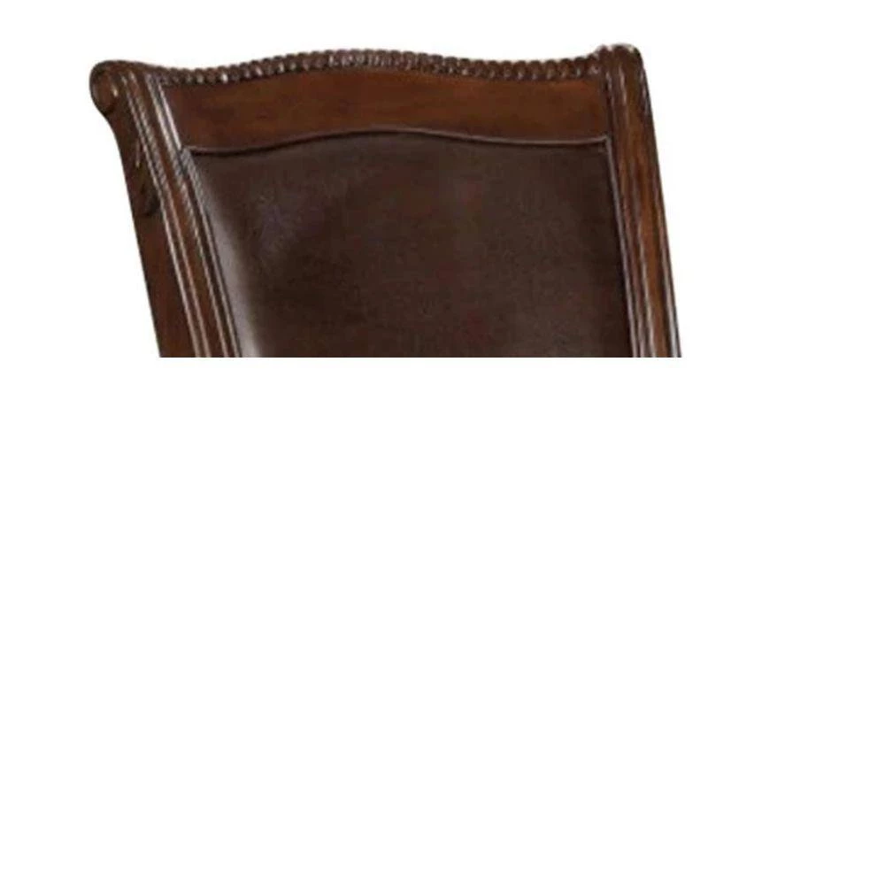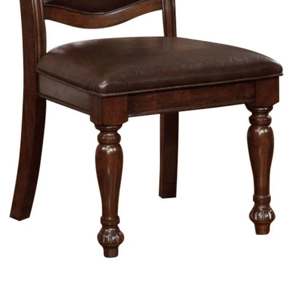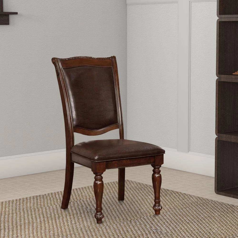 Shine up your silverware, bring out the glassware and get ready for the dinner party of the century with this glorious, traditional style dining chair. These upholstered chairs features espresso leatherette, rope-like trim and elegant carved legs. This chair is sure to make any dining area one of a kind.