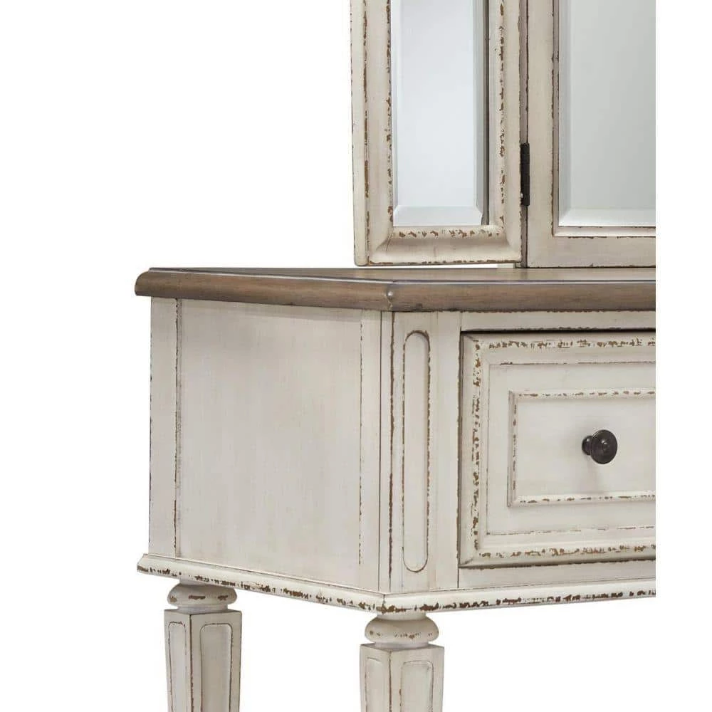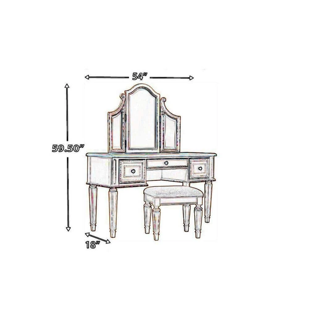 This wooden mirror stool set comes in a set which brings in the square tapered legged stool along with the mirrored dressing table with pull-out drawers. It has two side drawers and one middle pull-out drawer. Perfect for living room.