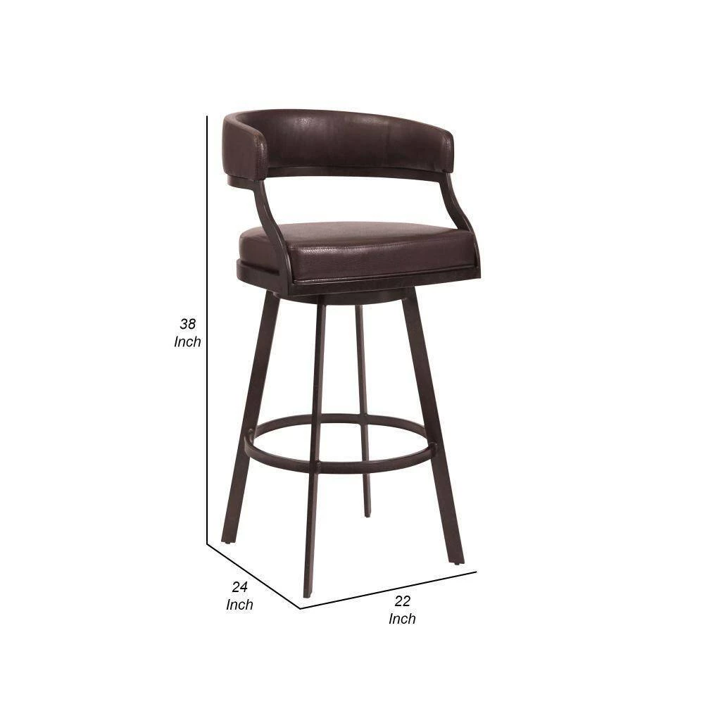 Take a load off in contemporary style with this gorgeously modern 360° swiveling counter stool. The auburn brown vegan faux leather, cotton, and polyester blend upholstery wraps the uniquely designed open curved back and cushioned seat perfectly for comfort and luxury at your kitchen counter or counter height dining table. Check out our Ava collection for matching items.