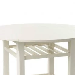 36 in. H Cream Round Wooden Counter Height Table With Wine Glass Shelf by Benjara