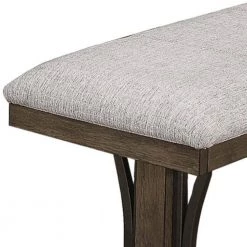 25 in. Brown and Gray Counter Height Fabric Upholstered Bench with Trestle Base by Benjara