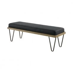 Gray and Black Fabric Upholstered Wooden Counter Height Bench 42.5 in. x 48 in. x 29 in. by Benjara