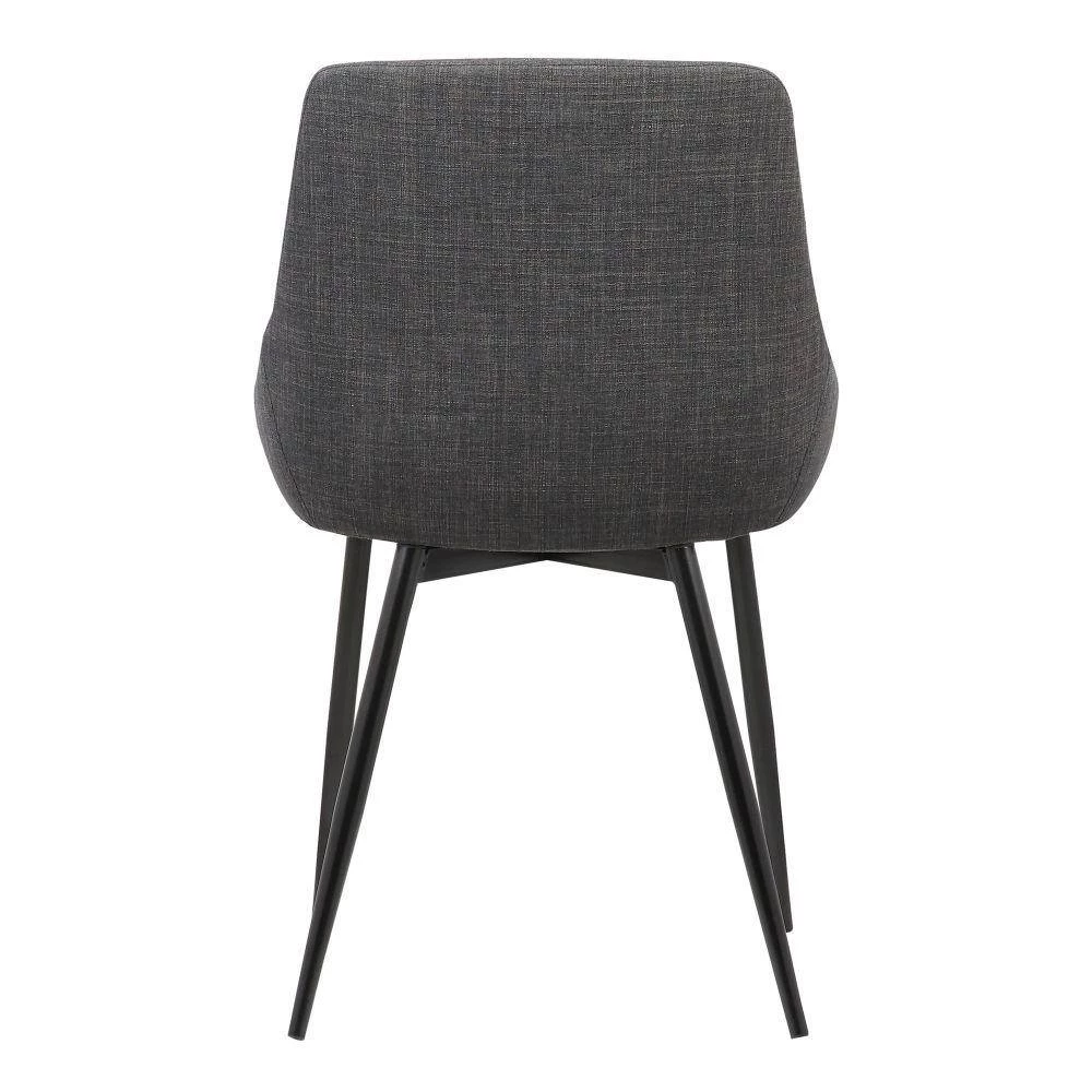 Have a fine dining session with your friends and family on this elegant and generous dining chair. It features a bucked seat with fabric upholstery in the hue of gray, granting your comfort and relaxation. It is supported by round tubular legs in a black finish, providing stability and imparting a dual tone look.